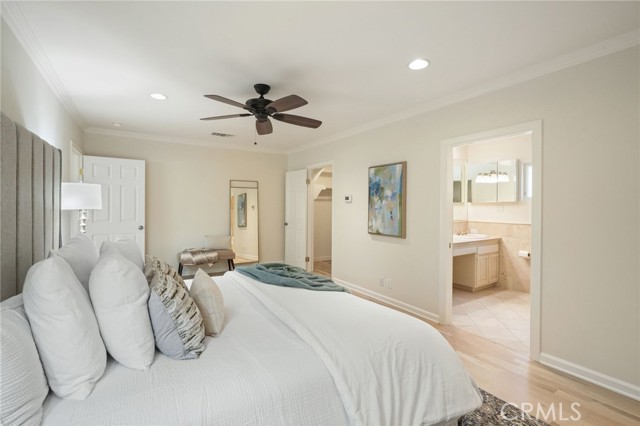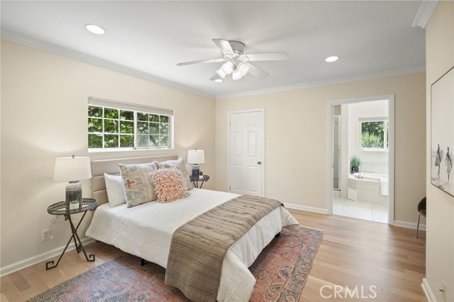EXQUISITE ENCINO SINGLE STORY HOME ON OVERSIZED CORNER LOT. Nestled on a generous corner lot in a serene, tree-lined neighborhood behind a private gated entry, this meticulously updated single-story home offers an impressive 2,565 square feet of thoughtfully designed living space. Located in prime Encino and Sherman Oaks adjacent, this residence stands out with a spacious layout, functional flow, and coveted central location. Not one but two primary bedrooms each feature a walk-in closet and their own en-suite bath, while an additional bedroom and well-appointed hallway bathroom are ideal for guests or a home office. The formal living and family rooms are expansive, and the separate dining area opens to the yard, creating a cozy space for Al Fresco dining and entertaining. Recent updates include refinished hardwood floors, fresh paint, and dual-pane windows with custom window treatments throughout, making this home truly turnkey. The chef s kitchen really stands out, boasting granite countertops, stainless steel appliances, abundant custom cabinetry, and a pantry that connects seamlessly to a dedicated laundry room. Both the front and back yards are fully fenced off for privacy and security. The detached two-car garage, fully drywalled with built-in storage and a large attic, offers exceptional ADU potential on this larger corner lot. Additional upgrades include a generator, well-maintained major systems, and secure driveway parking behind an automatic gate. Located within the highly regarded Hesby Oaks K 8 School District, this home enjoys a short walk to Ventura Boulevard and uniquely quick access to the 101 and 405 freeways streamlining commutes to the Westside and beyond. This desirable residence blends comfort, style, and convenience in one of the most prestigious cities of the San Fernando Valley. Don t miss your chance to make this residence your own.Interested in this Listing?