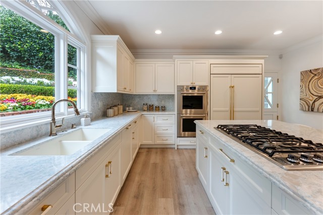 Reduced to sell, Situated in Encino's prestigious Royal Oaks area, this gated property offers unparalleled privacy, luxury and sophistication. This residence is just moments away from premier dining, shopping, and entertainment and located in Lanai Road School district! As you enter through the gates, you are welcomed by a beautifully landscaped front yard. The home features a thoughtfully designed floor plan, with 5 bedrooms and 5 baths, including a downstairs primary bedroom with a private ensuite bath and walk-in closet ideal for guests or multigenerational living. In addition there there is another bedrooms downstairs and a a gym, which could be a 6th bedroom. Upstairs, the elaborate main primary suite is a true sanctuary, boasting two oversized walk-in closets, a spa-like bathroom with a soaking tub, and an oversized shower. In addition, there is a large retreat complete with a fireplace and built in bookcases and cabinets, that house a small refrigerator. The two additional upstairs bedrooms are a nice size and have ample closet space. This home is designed for flexibility and convenience, featuring a gym or 6th bedroom and an additional storage room off the laundry room that can easily be transformed into a maid s room, home office, or secondary gym. The chef s kitchen is a showstopper, complete with high-end stainless-steel appliances, custom cabinetry, and a large island that opens to the light-filled living and dining areas. In addition there is a wonderful serving area, complete with a wine refrigerator. Throughout the home you will find beautiful molding, designer window treatments, an abundance of closets and built-in cabinets. The outdoor spaces are just as impressive, with a sparkling pool, spa, lush landscaping, and a charming patio, perfect for entertaining or relaxing with complete privacy. The property also includes an attached two-car garage, ample space for additional parking behind the gates and a generator that supplies power to the whole house, should there be a power outage. This exceptional gated home is the epitome of style, comfort, and security in one of Encino s most sought-after neighborhoods.Interested in this Listing?