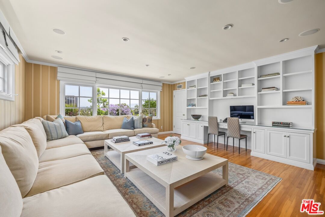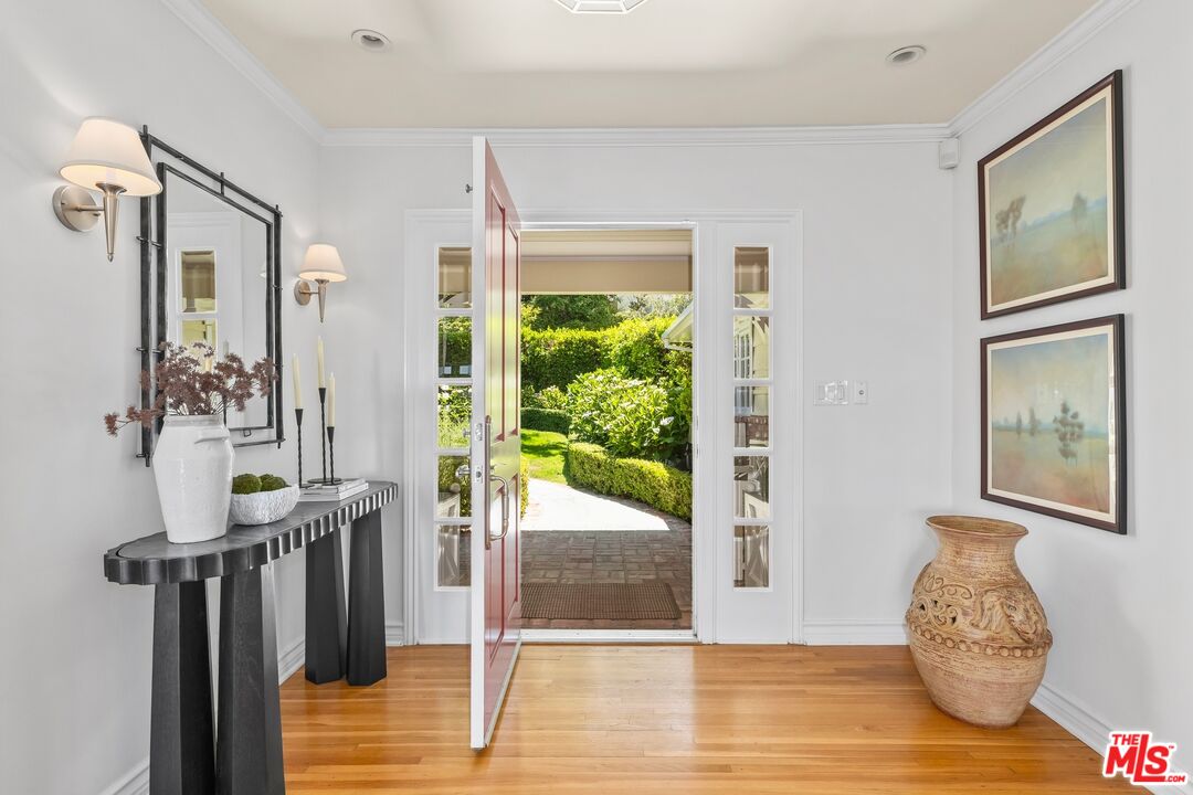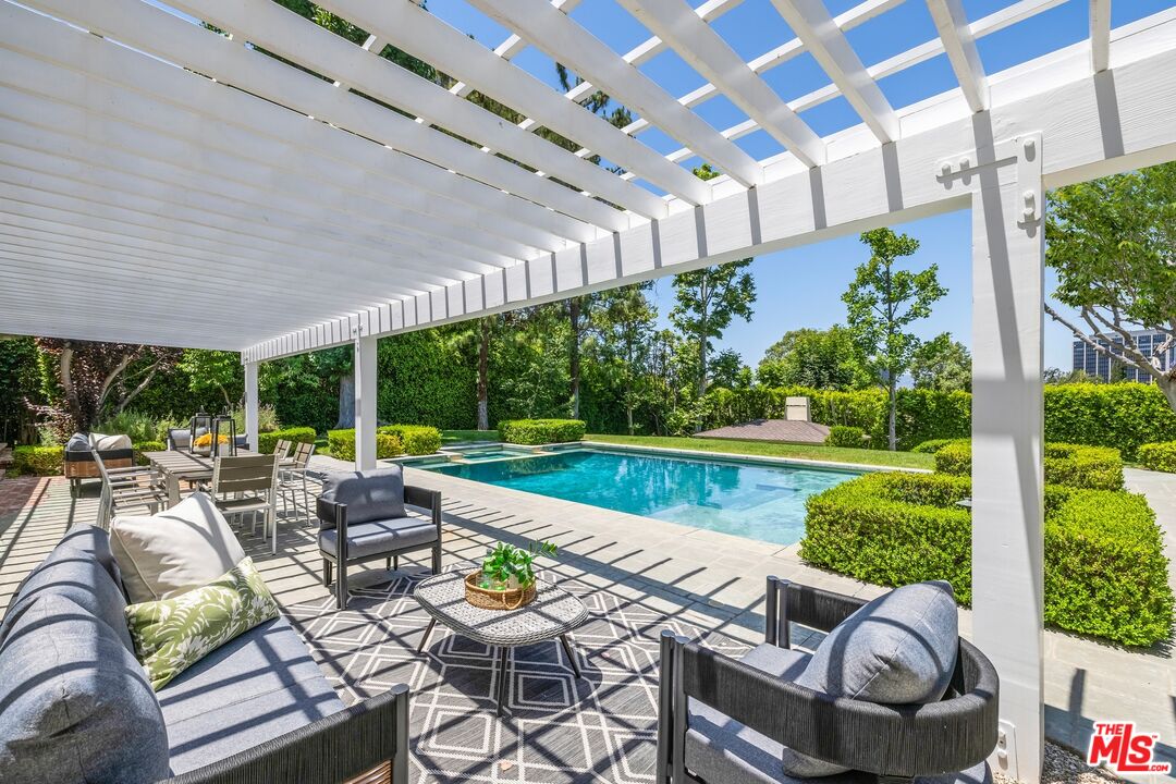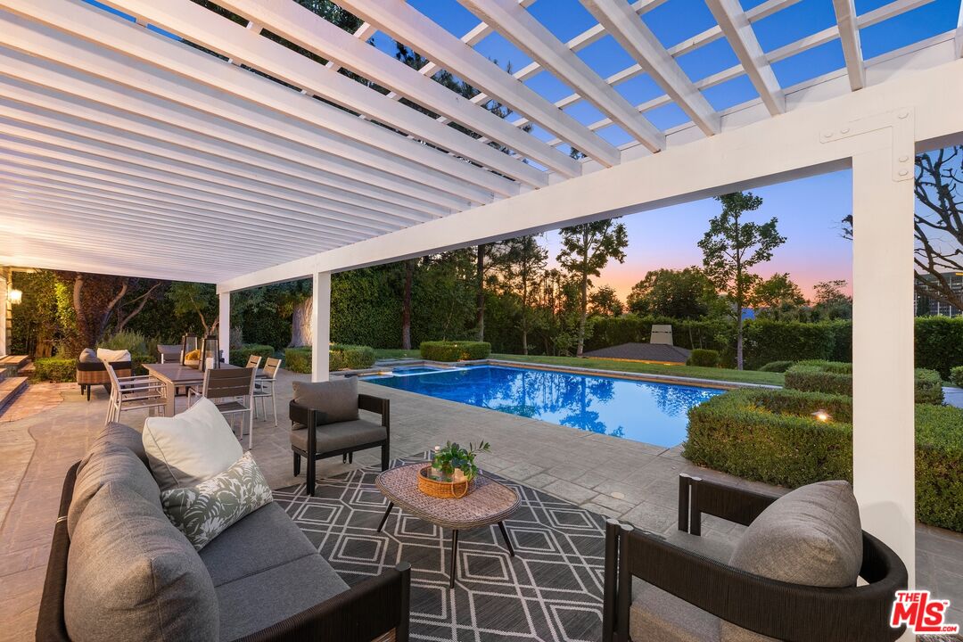 Timeless Traditional with Resort-Style Grounds in Royal Oaks, One of Encino's Most Coveted Enclaves! Set on nearly half an acre of exquisitely landscaped grounds, this turnkey estate is a masterful composition of classic elegance and modern sophistication. A gated courtyard leads to a warm and welcoming residence where timeless architecture harmonizes with contemporary luxury. Reimagined and expanded by Plush Homes, every element has been curated with precision and artistry, from hand-selected designer wallpaper, custom lighting and Waterworks fixtures that elevate each space. Upstairs, rich Oak hardwood floors, a marble-clad fireplace, and skylights create an airy, light-filled ambiance full of warmth and distinction, ideal for both intimate gatherings and grand-scale entertaining. The living room flows seamlessly into the formal dining room, where each space is framed by breathtaking city and mountain vistas. The state-of-the-art chef's kitchen is a true centerpiece, with honed marble countertops, a charming breakfast nook that opens to a beautifully landscaped front yard complete with a wraparound porch and custom BBQ pavilion. Downstairs, the private quarters exude luxury, with thoughtfully appointed bedrooms and an expertly engineered, soundproof media lounge designed for cinematic immersion. French doors reveal a vast stone terrace that opens to an extraordinary outdoor haven. This resort-inspired setting is a study in alfresco perfection, showcasing a shimmering pool and spa, manicured lawns, and tiered gardens that unfold like a private botanical retreat. A lower terrace offers a full-size sport court and an enchanting pergola with a marble built-in fireplace, inviting unforgettable evenings under the stars. As twilight falls, ambient lighting, mature trees, and meandering stone pathways transform the grounds into a magical, storybook escape. Positioned within the prestigious Lanai Road Elementary School district and moments from the finest offerings of the Valley, yet serenely tucked within Encino's most esteemed enclave, this is more than a home; it is a timeless sanctuary of beauty, privacy, and grace.Interested in this Listing?