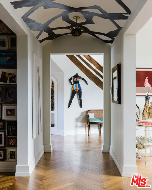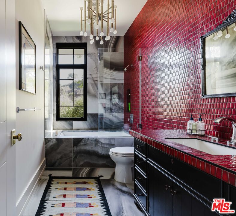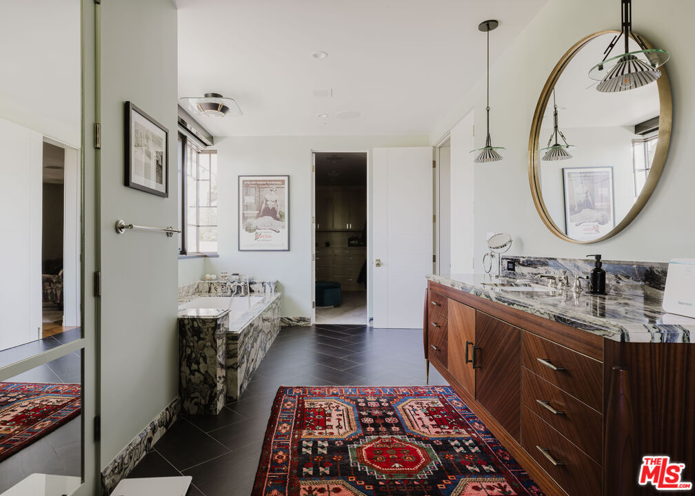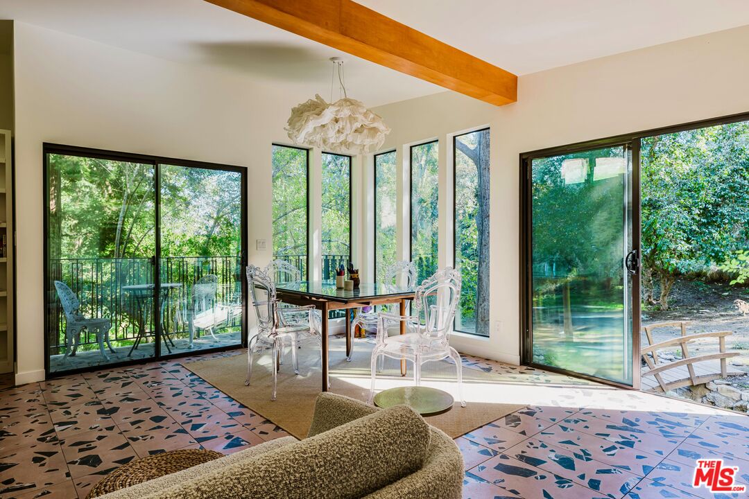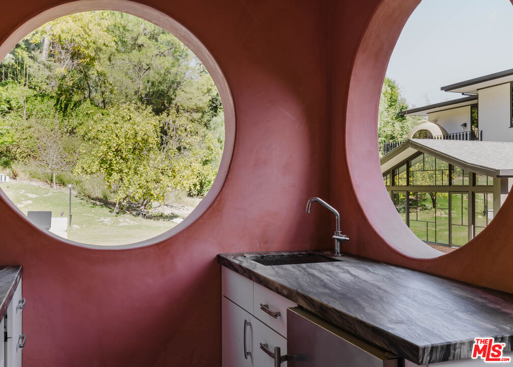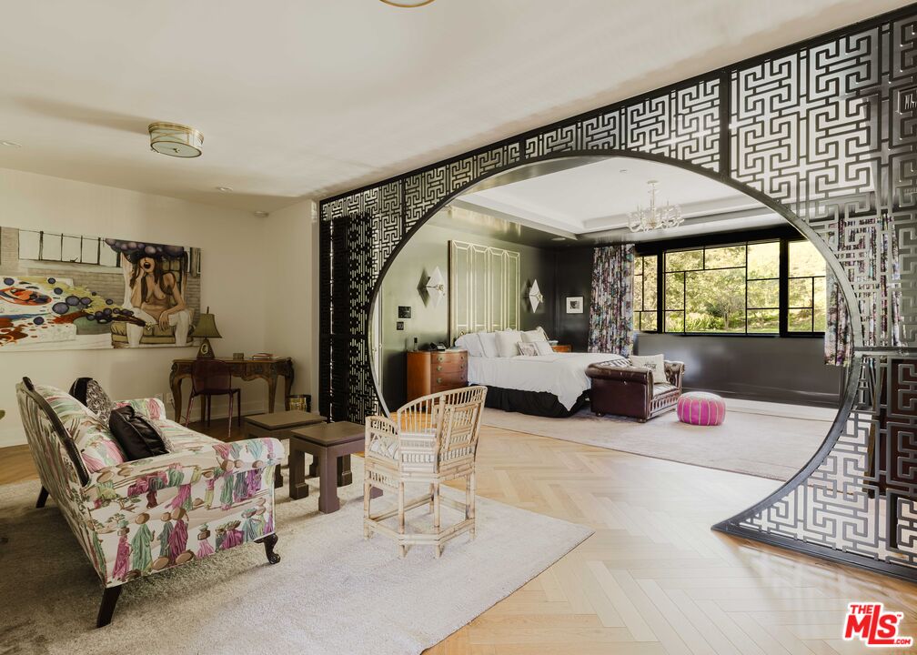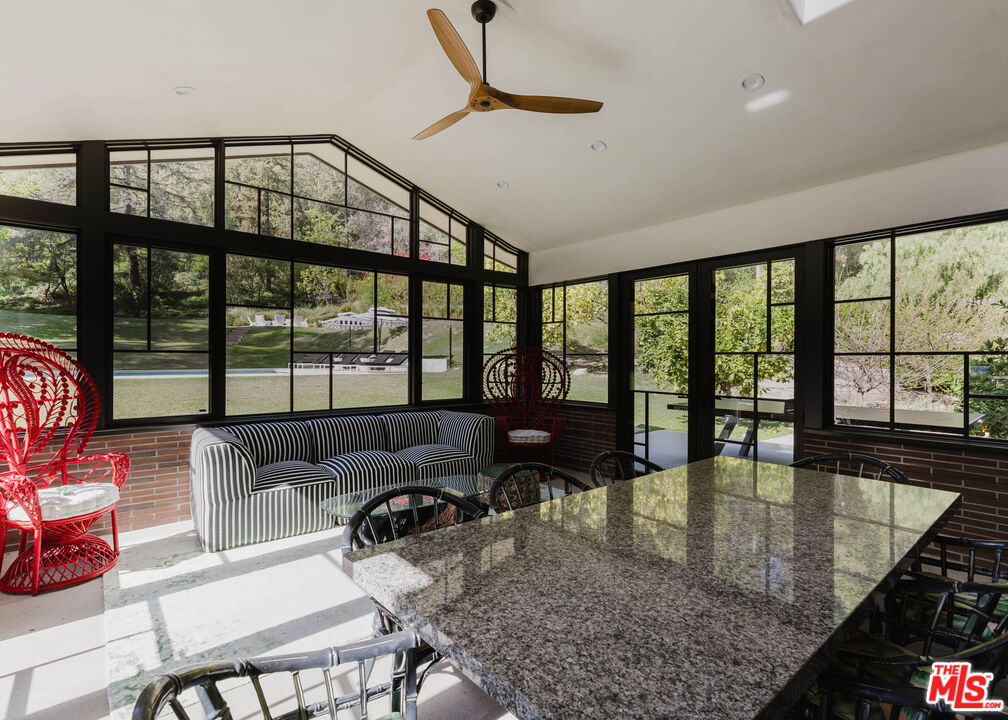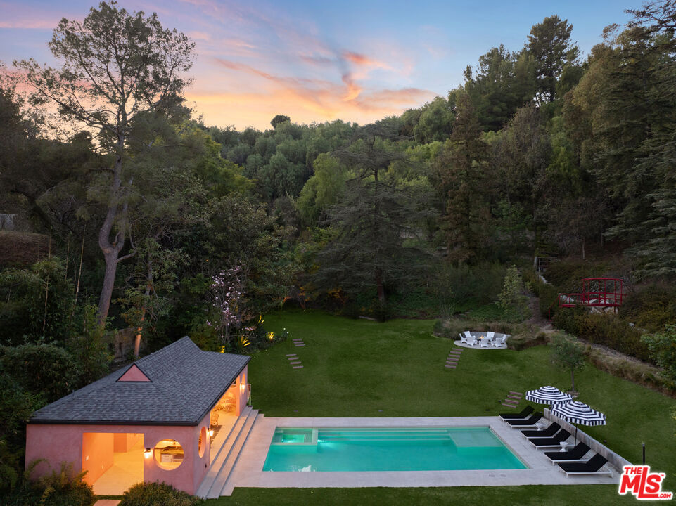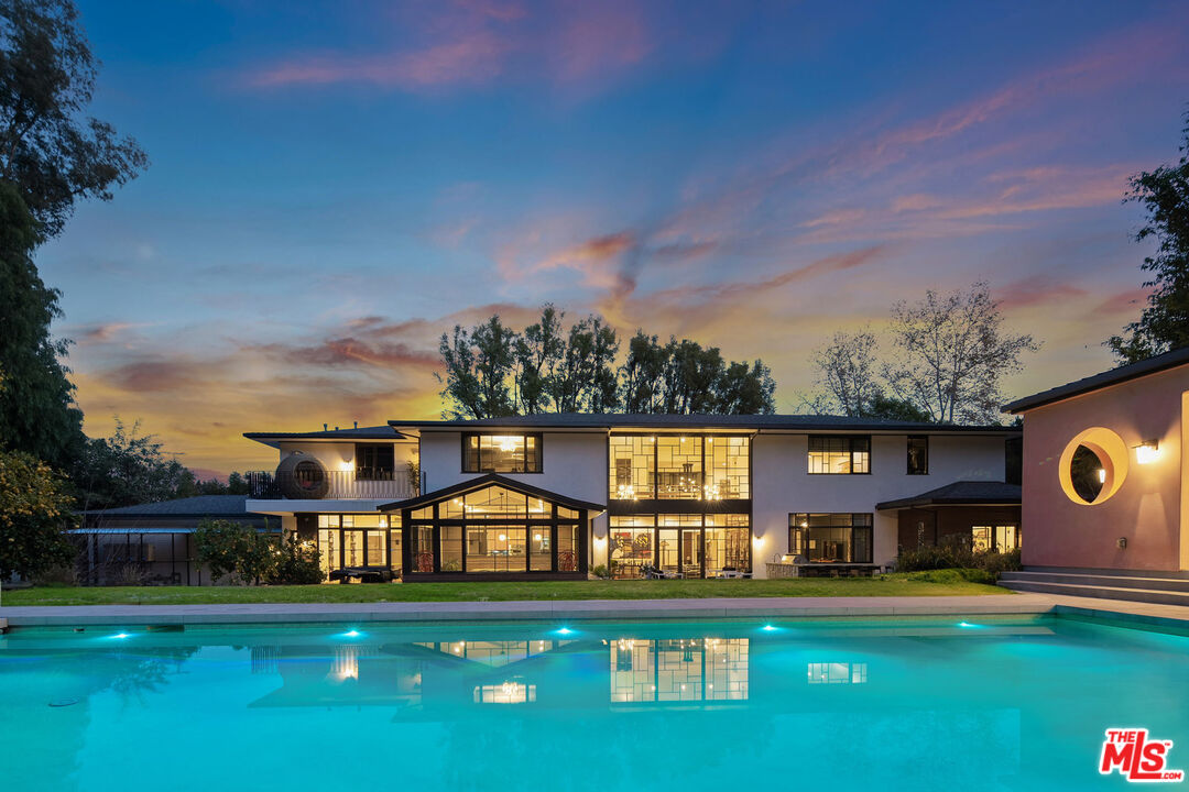 Introducing The Eden: a truly exceptional, one-of-a-kind estate, where elegance, artistry, and privacy meet in perfect harmony in Encino's prestigious Royal Oaks. Set back from the street behind private gates, this 2.6+ acre property is a botanical oasis featuring mature trees and meticulously landscaped gardens that offer a peaceful, secluded retreat. The home artfully combines contemporary design with distinctive flair, showcasing stunning custom Mondrian-inspired windows that flood the home with natural light and frame panoramic views of the lush, park-like grounds. Vintage 1940's Italian chandeliers illuminate the magnificent great room, with a stunning custom Ceppo marble fireplace mantle adding a touch of sophistication and warmth. A chef's dream, the kitchen features Poggenpohl custom cabinetry, a professional fridge/freezer, an 8-burner grill with griddle, three ovens, an exceptional hammered-steel range hood, massive center island, and exquisite leathered quartzite countertops. A museum-quality, fully enclosed sunroom is ideal for al fresco dining even on cooler evenings. The primary suite is a sanctuary of chic comfort offering a private living area, two walk-in closets, a hers bathroom with rose quartz countertops and vintage brass lighting, and a separate his bathroom with oversized steam shower and tub. Ideal for entertaining, the expansive backyard boasts a swimmer's pool with spa, private hiking trails, a grove of mature fruit trees, fully enclosed dog run, and an expansive cabana with a dedicated BBQ area, wet bar, cozy fireplace, and outdoor shower. Top-of-the-line amenities include a safe room with a ballistic door, state-of-the-art movie theater, gym, a pristine sauna and steam shower, game room, 300-bottle wine storage, an elaborate security and sound system, formal office, and a detached guest house replete with a kitchenette and balcony overlooking a 100 ft. long rock bed stream and water fixture. The property also offers a three-car garage with ample storage and a workbench, with a plethora of additional parking in the driveway. With State-of-the-art, extensively engineered retaining walls, swales, and drainage systems every detail has been designed with precision. A true testament to passion and dedication. The Eden is not just a home; it's a masterpiece, a blend of timeless style, unrivaled craftsmanship, and unparalleled vision.Interested in this Listing?