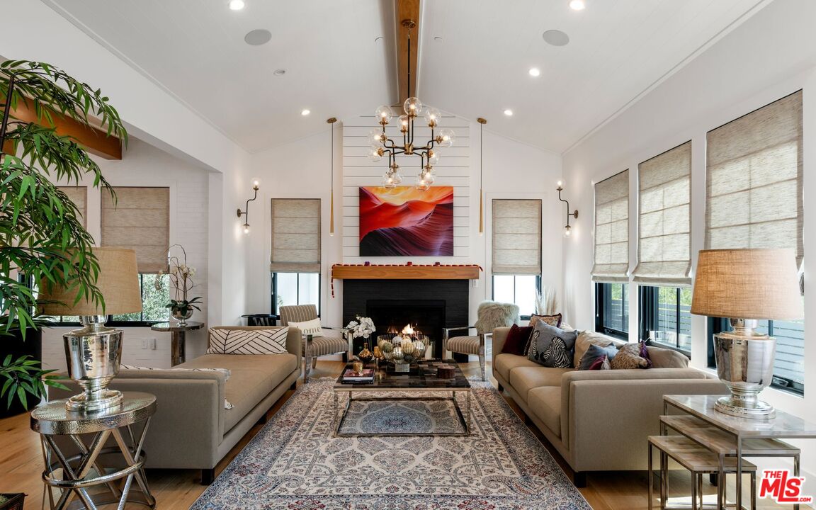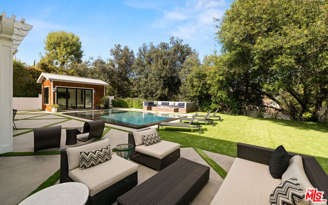 Welcome to this stunning modern-traditional home ideally situated on a quiet cul-de-sac in the highly sought-after enclave of Royal Oaks, Encino. Built in 2018, this newer construction (not a remodel) offers a limited builder warranty and is designed for the discerning buyer who values both elegance and modern conveniences. With impeccable curb appeal, the gated property immediately captures attention, inviting guests into a soaring foyer with high ceilings and European oak floors throughout. The elegant living room features a grand fireplace, seamlessly flowing into a formal dining room perfect for hosting. A glass-enclosed private office with custom built-ins provides a refined workspace with exquisite finishes. The heart of the home is the chef's gourmet kitchen, a true masterpiece. It boasts double islands with Calcutta quartz counters, a 60-inch Wolf range, a 72-inch built-in Sub-Zero fridge, a large walk-in pantry, and a butler's pantry. The spacious breakfast area is adjacent to a cozy family room, which showcases beautiful built-ins and a fireplace. Floor-to-ceiling pocket glass doors open to a sprawling entertainer's yard, creating a perfect indoor-outdoor flow. The main floor also offers a state-of-the-art home theater, a stunning powder room, a mudroom, and a wrought-iron, glass-enclosed wine cellar.Upstairs, the romantic master suite is a true retreat, featuring a sitting area and a dual-sided fireplace. The two expansive walk-in closets and a spa-like master bath complete with a soaking tub, glass rain shower, dual sinks, makeup vanity, and two water closets offer ultimate comfort and luxury. The entertainer's yard is a spectacular oasis with a zero-edge sparkling pool and spa, a fire pit, a built-in barbecue, and a pool house with its own bathroom. Thoughtfully designed for modern living, this home includes a full metal roof throughout, all underground utilities, a whole-house water filtration system, and smart home technology with integrated Control4. Additional features include a three-car garage and the option to purchase the home partially furnished. This exceptional residence offers a luxurious lifestyle just moments away from Encino's finest shops, dining, and more.Interested in this Listing?