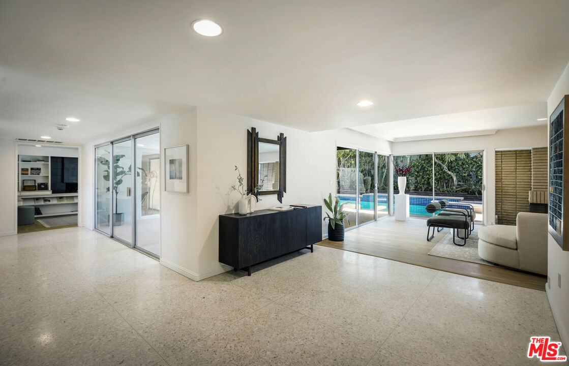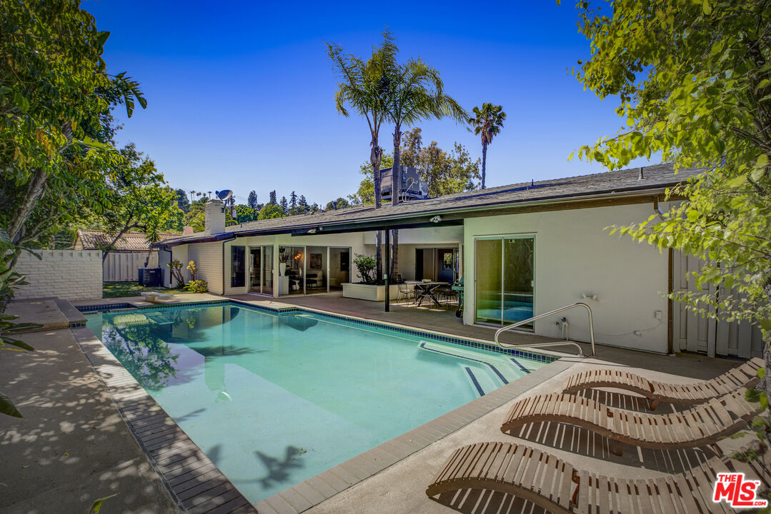 First time ever on the market, this cherished mid-century gem is tucked away on a quiet cul-de-sac south of the boulevard, in the highly sought-after Lanai school district. Built in 1969 and lovingly cared for by one family ever since, this four-bedroom, three-bath home is full of character, space, and soul. With over 3,400 square feet, the layout is generous and thoughtfully designed. Step inside to original terrazzo tile floors that lead you into a bright and welcoming living room, anchored by a gorgeous tan roman brick fireplace. Large sliding doors throughout the home invite the outdoors in, creating an easy flow to the expansive patio and a classic, deep 1960s pool--perfect for sun-soaked weekends and summer memories. There's a formal dining room for holidays and dinner parties, as well as a cozy breakfast nook just off the kitchen for everyday family meals. The bedroom wing is tucked away to the right of the entry, offering privacy and calm. Three well-sized bedrooms share two full bathrooms, while the spacious primary suite includes a walk-in closet and an ensuite bath with a stunning original sunken tub, vintage tile, and a tranquil atrium that gives the space a spa-like feel. Step out from the primary onto your own private deck--ideal for a quiet morning coffee or a glass of wine at the end of the day. Need space to entertain? There's a second casual living room with a sunken bar that practically begs for summer cocktails and year-round gatherings. The oversized three-car garage offers plenty of room for storage, hobbies, or even a home gym. Peaceful and private, yet just a short stroll to Ventura Boulevard's shops and restaurants, this home is ready for its next chapter.Interested in this Listing?