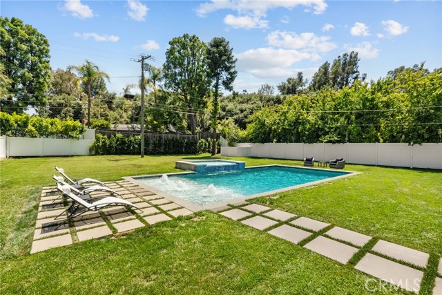 Welcome to the home you've been waiting for! This meticulously fully remodeled 3 bedroom, 3.5 bathroom residence spans a luxurious 2,639 sqft, set on an expansive 17,424 sqft lot in a prime Encino location, south of Ventura Boulevard. Every detail of this beautiful home exudes modern sophistication, boasting elegant wood flooring throughout. The slick, modern kitchen is a culinary dream, equipped with high- end appliances and perfectly complemented by frameless folding doors that create a seamless indoor-outdoor living experience. Comfort and privacy are paramount with two master bedrooms, each featuring its own sleek, spa-like bathroom. The home's exterior has been enhanced with new black vinyl windows and custom doors, leading to a truly resort-style private backyard. This entertainer's paradise features a brand new heated saltwater pool with a 12-person Jacuzzi and a state-of the-art Pentair pool system. Enjoy the convenience of an outside full bathroom for pool use, a huge patio with ceiling fans, and a paver driveway that leads to ample parking. Equipped with an EV charger, tankless water heater, integrated surround sound system, and a hardwired security system, this gated property offers both luxury and peace of mind. The immense backyard provides endless possibilities, allowing you to easily build a tennis court, basketball court, ADU, or a pool casita to further enhance your lifestyle. Enjoy the convenience of being just minutes away from the award-winning Lanai Road Elementary School, renowned restaurants, upscale shopping, and more. This is truly a rare find, offering unparalleled comfort, style, and opportunity in a coveted Encino neighborhood.Interested in this Listing?