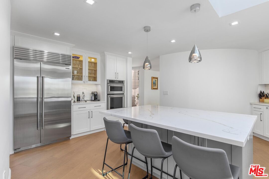Spectacular remodeled view home nestled in the scenic hills of Encino. This 4BD/2.5BA residence is designed for both everyday living and sophisticated entertaining. The chef's kitchen features a Sub-Zero refrigerator, ample cabinetry, plenty of prep space and an island adorned with sparkling quartz countertops. The dining room flows seamlessly into the kitchen, making it ideal for hosting dinner parties. The main level includes three bedrooms with generous closet space, all sharing a well-appointed full bathroom. Step outside to discover an entertainer's paradise in the backyard, complete with a resort-like pool, spa, and huge sun deck, perfect for lounging and soaking in the breathtaking hillside views. Ascend the elegant spiral staircase to the primary bedroom, which offers a walk-in closet and a spa-like bathroom featuring dual vanities and a spacious walk-in shower illuminated by a skylight. Gather in the inviting living room, highlighted by a mid-century modern, free-standing fireplace showcasing incredible views of the valley. Enjoy game nights in the large entertainment/game room with an adjacent wet bar. You will also find a separate room perfect for an office or additional bedroom. This exceptional home is located within the highly esteemed Lanai Road Elementary school district and offers easy access to the Westside and the shopping and dining options of Ventura Blvd.Interested in this Listing?
