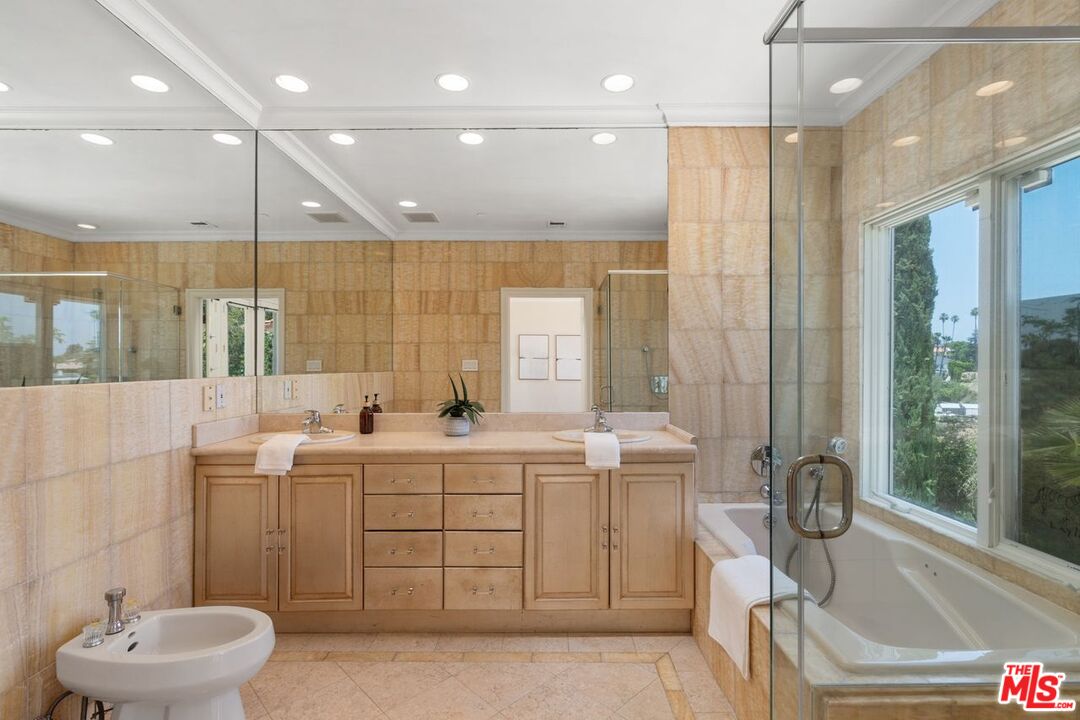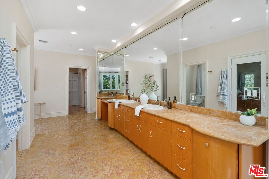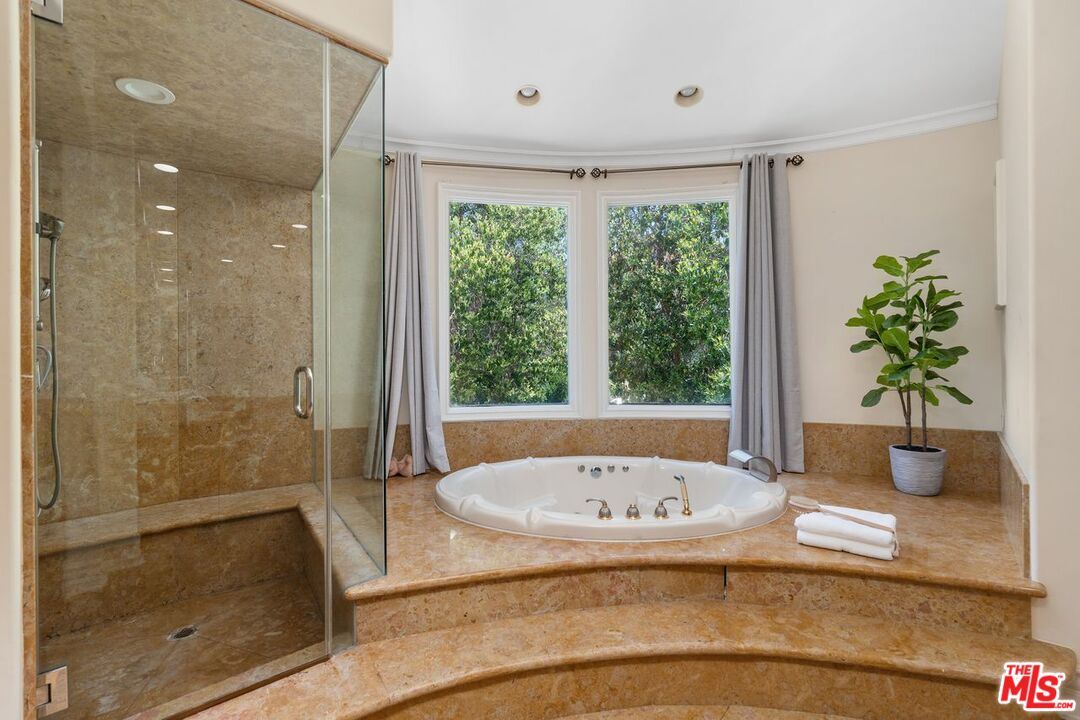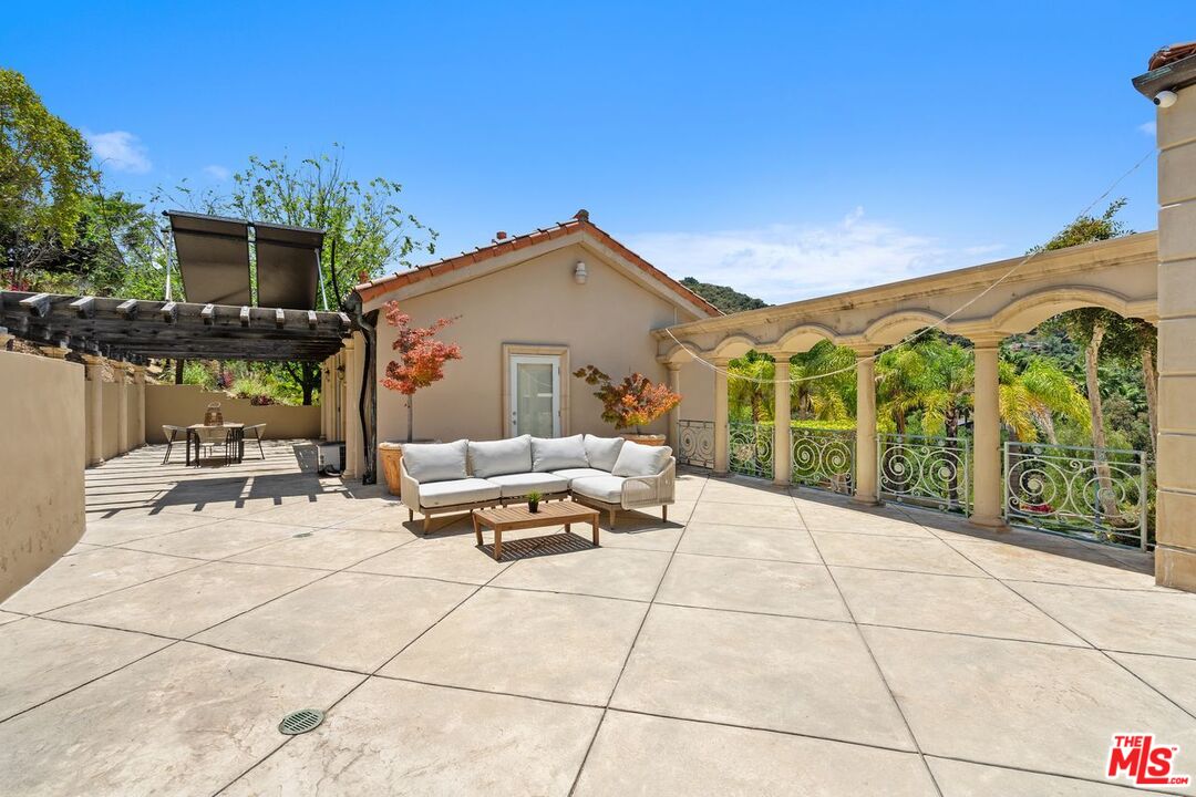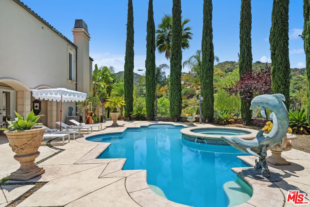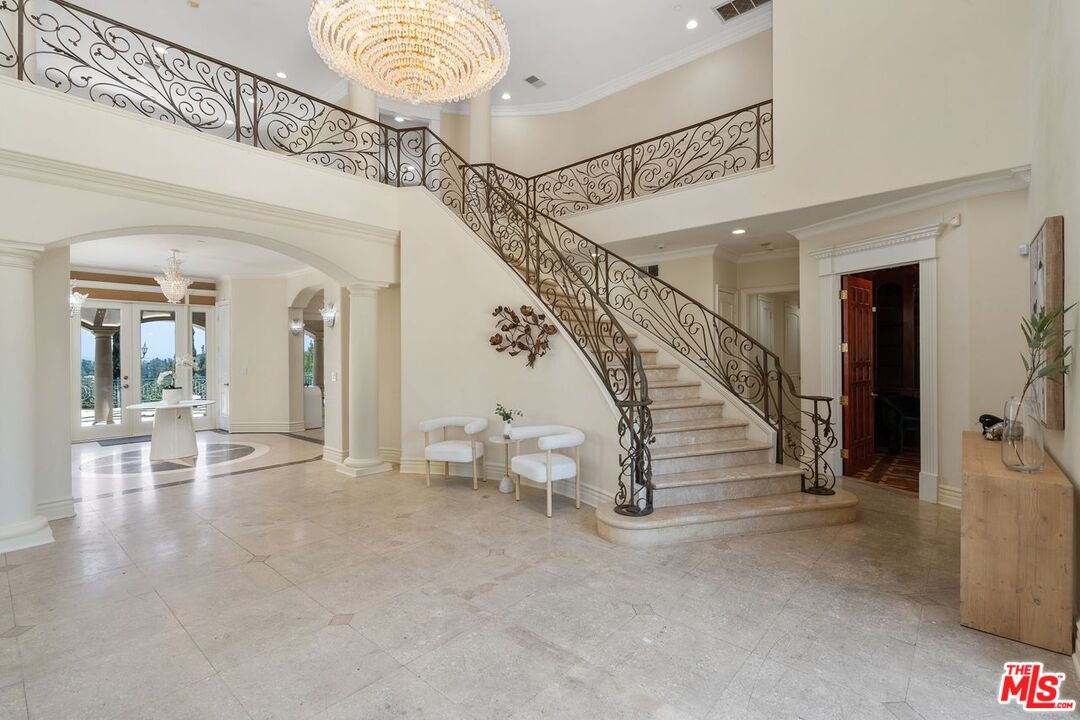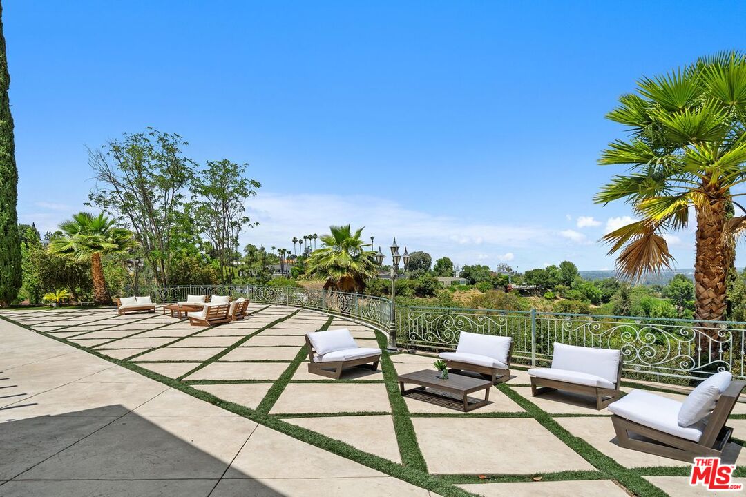 PRIVATE ESTATE. A rare and refined masterpiece, this gated Italian Tuscan Villa, gracefully set atop 3.07 private acres in the coveted Santa Monica Mountain enclave of Encino, defines timeless European elegance fused with California sophistication. Hidden behind a grand 450-foot private driveway, the estate unveils itself like a secluded resort, offering absolute serenity and sweeping panoramic views of rolling canyons by day and glistening city lights by night. Crafted with uncompromising attention to detail, this approx. 7,500 sq ft architectural estate offers an elevated lifestyle of luxury, scale, and design. The dramatic foyer, crowned by soaring ceilings and anchored by a magnificent curved staircase, opens to luminous living spaces enriched with walls of glass, bespoke finishes, and richly appointed textures throughout. The formal living and dining rooms flow effortlessly beneath voluminous ceilings ideal for grand-scale entertaining or intimate evenings. A professionally equipped chef's kitchen stands at the heart of the home, featuring custom cabinetry, premium appliances, generous prep areas, and seamless access to indoor/outdoor spaces designed for elevated entertaining. The main residence comprises four luxurious bedroom suites, each with its own ambiance and privacy, complemented by five spa-inspired baths. A stately wood-paneled library, dual family rooms (on both levels), and multiple private terraces offer spaces to unwind, gather, and admire the unparalleled surroundings. Adding to the estate's allure is a fully detached 2-bedroom guest house with expansive terraces, ideal for extended guests or multi-generational living. A separate entertainment pavilion, fully insulated, offers the freedom to indulge in high-volume media or private events without disrupting the tranquility of the main or guest residences. True to the essence of a world-class retreat, the outdoor grounds are a sanctuary of beauty and function: custom-designed stamped hardscape wraps around the estate; tropical landscaping and mature forest-like surroundings create an atmosphere of total seclusion; and a massive motor court accommodates 25+ vehicles with ease. The three-car garage, multiple storage rooms, and separate utility areas ensure both luxury and practicality. Indulge in a full complement of wellness amenities, including a private sauna, oversized jacuzzi tub, and a steam shower, evoking the ambiance of a luxury spa. The estate is encircled by thousands of feet of custom-built retaining walls, offering structure, beauty, and enhanced privacy. Minutes from the vibrant energy of Ventura Boulevard, premier restaurants, top-rated schools, and upscale shopping, yet worlds away in peace and privacy, this residence offers the rare balance of seclusion and accessibility. A once-in-a-lifetime opportunity to own an estate of this scale, distinction, and provenance in the heart of Encino.Interested in this Listing?