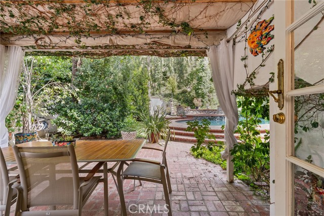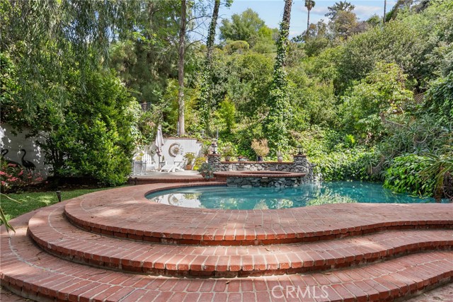 A Masterpiece of Comfort, and Privacy in Prime Encino! Welcome to this rare 5 bedroom 3 and a half bath home! Blending elegance, privacy, and refined living, this exceptional residence is nestled in a lush, tranquil setting ideal for the discerning buyer. The entrance greets you with natural light via Skylight leading you to the grand living room which features features a custom marble fireplace, crown molding, and recessed lighting, with expansive French doors that open seamlessly to manicured outdoor living spaces perfect for sophisticated entertaining, serene relaxation or simply take a dive in the pool. The chef s kitchen is a harmonious fusion of classic design and modern function, featuring glass-paneled cabinetry, striking black granite countertops, white appliances, and a garden-view window that floods the space with natural light. The spacious primary suite located on the second floor offers retreat-like ambiance with plush carpeting, a private balcony, and a spa-inspired ensuite bathroom boasting dual pedestal sinks, a soaking tub framed by a bay window, marble-look flooring, and a sleek glass vanity. Outdoors, a resort-style pool and spa are surrounded by timeless red brick decking and lush tropical landscaping. A charming patio lounge, vine-covered walls, and mature trees complete this private oasis. Additional highlights include a custom staircase, living room and a secluded side patio with Spanish-tiled steps and Adirondack seating. The property's direct connection to Mulholland Drive offers a significant advantage by providing a convenient and efficient route that helps residents avoid the heavy traffic typically found on major thoroughfares. This one-of-a-kind home offers unparalleled comfort and timeless sophistication in a truly exclusive setting!Interested in this Listing?