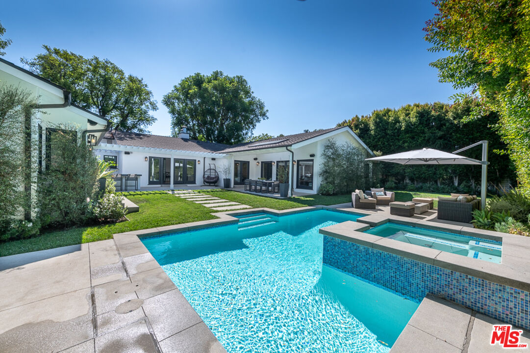 Step into the extraordinary ambiance of this California ranch, gracefully situated on a sprawling corner lot within the highly sought-after Amestoy Estates. This residence captivates with its inviting curb appeal, featuring 4 beds, 4.5 baths, and a generous 4,132 sqft living space on an expansive 12,200 sqft lot. Upon entry, you'll be welcomed by an impeccably maintained interior boasting an open concept floor plan adorned with designer finishes, oak wood flooring, and top-of-the-line fixtures. French doors seamlessly connect indoor and outdoor spaces, enhancing the overall charm. Bathed in natural light, the spacious interior unfolds with a formal living room and fireplace, a dining room with a fireplace and ceiling beams, an exercise room/home office, and a sizable game room with a trestle ceiling and a full wet bar, complete with a beverage cooler and wine rack. The gourmet kitchen features a marble center island, slate counters, custom white cabinetry, a breakfast bar, a skylight, and premium Viking & Thermador appliances, all connecting to the cozy family room. As you make your way to the luxurious master suite, you will encounter vaulted ceilings, his and her closets, a makeup vanity, and a spa-like bath with dual quartz vanities, a dramatic soaking tub, and a basket-weave marble floor. Two additional generously sized bedrooms overlook the delightful front yard. Step outside to the lushly landscaped backyard, enveloped by tall hedges for ultimate privacy. A loggia for outdoor dining, a spacious grassy yard, BBQ kitchen, firepit, and a pool & spa with a water feature create an idyllic oasis. This property seamlessly merges modern elegance with timeless charm, offering a haven for luxurious living and entertaining. Seize the opportunity to make this exquisite residence your home!Interested in this Listing?