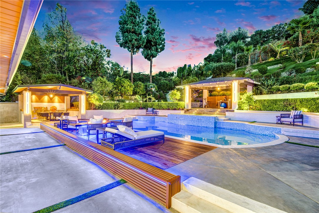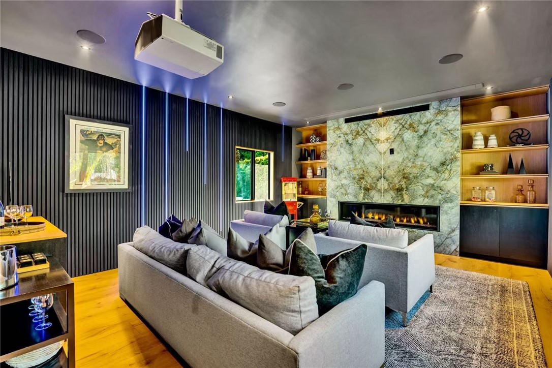 Welcome to this exquisitely reimagined smart estate-A perfect combination of modern luxury,elegance,and functionality.This private,gated resort style home nestled on a wide,quiet, bright street within a tranquil neighborhood.sitting on nearly half acre lot.The pictures don't do justice to the beauty and emotion of this home.Step inside to discover a open-floor plan.Chef s Kitchen with dual islands,Sub-Zero refrigerator/freezer,60 Wolf range with infrared griddle,built-in coffee machine & wine cellar.Whether entertaining guests or preparing a family meal, this kitchen sets the stage for culinary excellence.The formal dining room offers refined elegance,the home theater is equipped with a Sony laser projector,a 110 motorized screen, and acoustic panels.The primary suite is a private sanctuary featuring its own elevator to the ground floor,a cozy fireplace, dual walk-in closets,a makeup vanity,and a spa-inspired soaking tub.A thoughtfully designed guest suite includes modern oak cabinetry,a built-in desk,and a walk-in closet ideal for extended stays or as a home office.A floating staircase with glass railings and white oak steps anchors the entry with bold architectural presence.Smart control systems-sound,lighting,gate,climate, pool&Spa.Step into the spectacular resort-style tropical retreat complete with a newly renovated pool and spa.Entertain with ease in the outdoor kitchen with a premium BBQ, dual-fuel side burner, and beverage cooler.two stylish cabanas surrounded by lush,drought-tolerant landscaping.An orchard garden with many mature fruit trees,a private walking trail,soothing water features,Ipe wood pool deck with custom gas fire pit and a sports area complete the backyard oasis-like design-offering both recreation and serenity.Additional features:Six gates, six parking space,Three fireplaces;New Energy Star HVAC system;New pool equipments,Solar-ready 400-amp electrical panel;Indoor/outdoor high-fidelity audio system, water saving irrigation system. Designed in accordance with Feng Shui principles,From the sound of birds and flowing water to the seamless flow of indoor and outdoor living spaces, this estate delivering a rare combination of tranquility, security, and cutting-edge luxury. Welcome to your escape for life-This is more than a home-it s a private resort, a sanctuary, an entertainer s dream,and a statement of lifestyle. -where Smart, Sexy,meets luxury waiting to be yours.