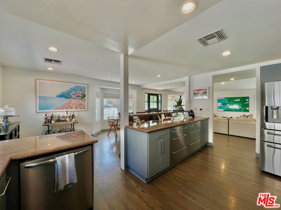The White Rose of Rosita is a beautifully remodeled storybook Home Sweet Home nestled south of Ventura Boulevard in the heart of Encino. Framed by a classic white picket fence and a blooming garden of white roses, this enchanting 3-bedroom, 2-bath main home + ADU w/bath effortlessly blends timeless charm with high-end modern updates. Enter through a Dutch door into an open floor plan with gleaming hardwood floors, soaring ceilings, and an inviting living room anchored by a bay window and a cozy fireplace. The chef's kitchen is a showstopper, featuring a breakfast bar, premium appliances, child-proof cabinetry, and thoughtful finishes throughout. Each bathroom has been exquisitely remodeled with spa-like fixtures and finishes, elevating daily routines into a luxurious experience. The resort-style backyard is a private paradise made for unforgettable entertaining. In addition to serving the main house, the outdoor space also connects to a permitted ADU, currently styled as a luxurious poolside cabana and entertainment lounge. The ADU includes a full-size kitchen, double-door wine fridge, and a pass-through window to the BBQ area perfect for hosting with ease and elegance. Enjoy cozy al fresco dining on the covered terrace with ceiling heaters, cook up delicious meals at the built-in barbecue, and wow the kids with a real pizza oven. Then, gather around the stylish fire feature seating area for evening conversations under the stars. Lounge poolside while watching your favorite movies on the double-sided projection screen, visible from both the backyard and the sparkling pool, which boasts all-new equipment and an electric cover. A built-in audio system fills both the home and outdoor spaces with your favorite soundtrack, completing the ultimate entertainer's dream. Additional highlights include: Lift Master automated gate with EV charging station. Upgraded electrical system. Gated, secure perimeter with exterior security cameras. Zoned for top-rated schools, including Avenue Charter, Gaspar De Portola Middle School and Encino Charter Elementary. Located on a quiet, tree-lined street just minutes from shopping, dining, and freeway access. This turnkey, gated Encino gem offers charm, comfort, and luxury for the modern family. Welcome home!Interested in this Listing?