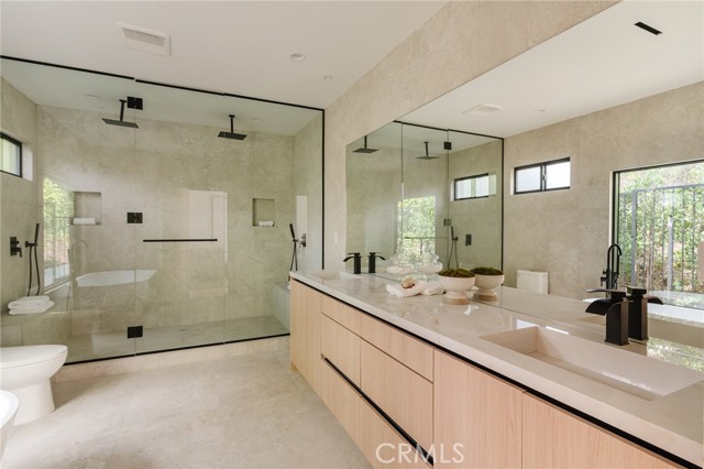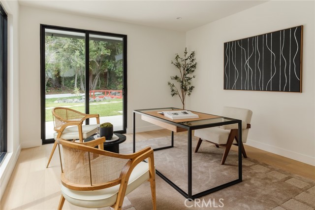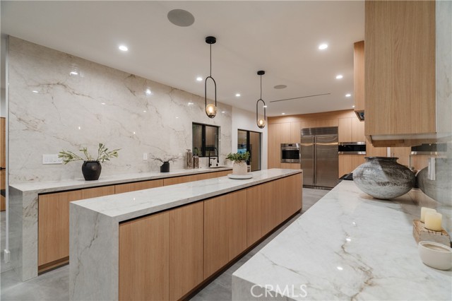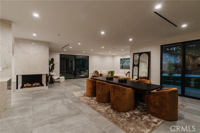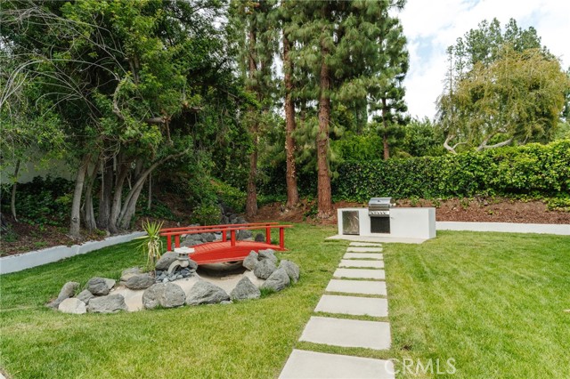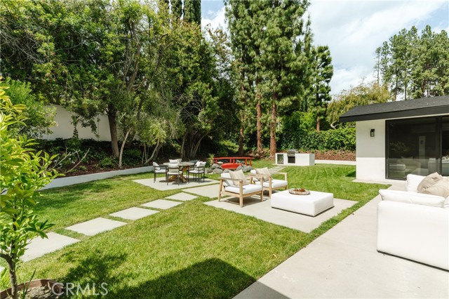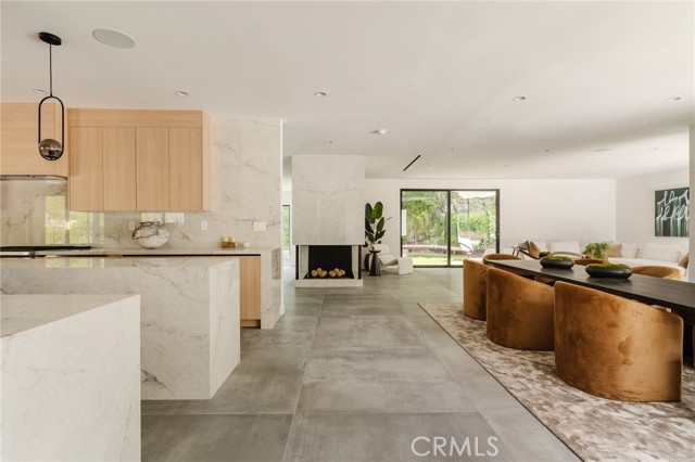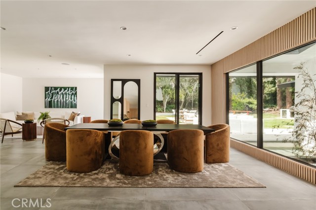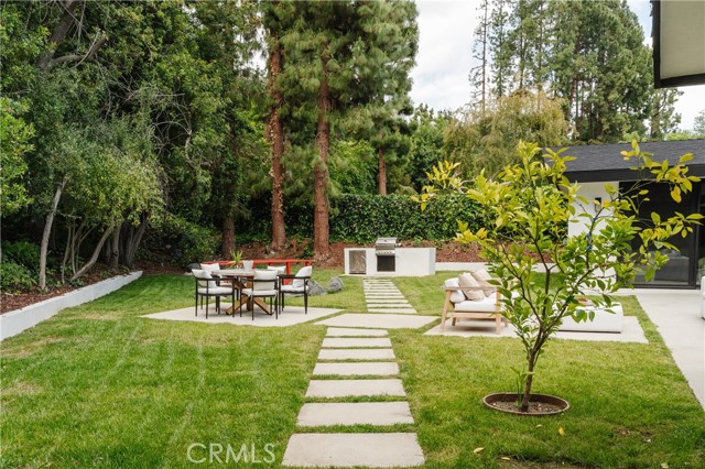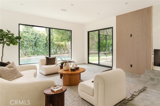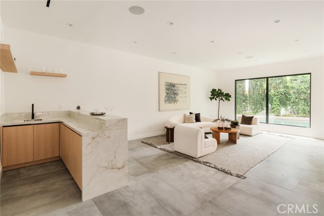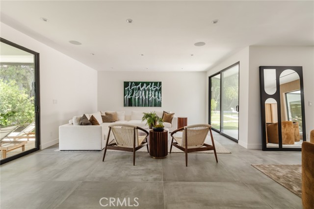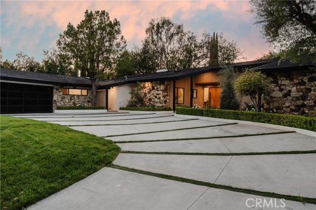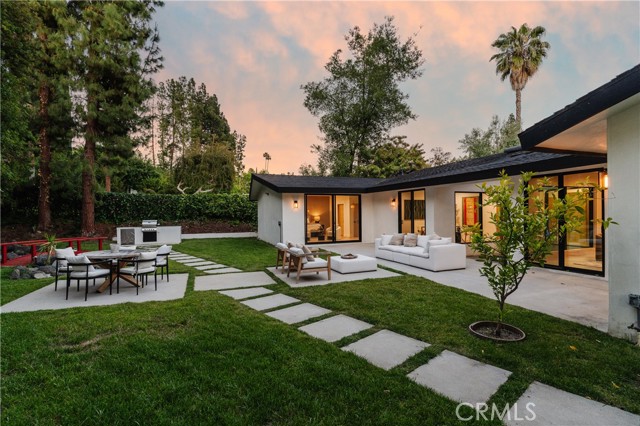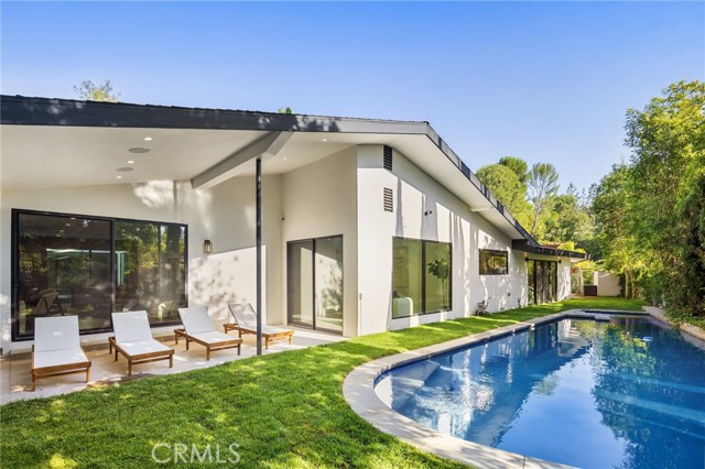Presenting a completely reimagined single-story mid-century modern estate, privately gated in the prestigious Lake Encino community. Set on an expansive 18,031 sq ft lot, this thoughtfully redesigned residence offers 5 bedrooms, 4 bathrooms, and 4,503 square feet of living all finished with premium materials and curated details. A custom white oak pivot door opens to a tranquil foyer, where a serene water feature is framed by floor-to-ceiling glass, setting a tone of understated luxury. The open-concept layout flows effortlessly, with designer fixtures, and clean architectural lines throughout. The family room features a sleek 3D fireplace and built-in bar, perfect for both entertaining and everyday living. The formal dining area connects seamlessly to the living space, all filled with natural light and designed to blend indoor and outdoor living. The chef s kitchen is outfitted with custom cabinetry, quartz countertops, a large center island, and high-end appliances. The primary suite offers a luxurious retreat with a spa-inspired bath and generous closet space. Three additional bedrooms and two full bathrooms are positioned on the opposite side of the home, providing space and privacy for family and guests. Expansive sliding glass doors lead to a resort-style backyard with multiple lounge areas and a sparkling pool that retains its original mid-century shape. Located just moments from the chic shopping and dining destinations along Ventura Boulevard, offering the best of both serenity and convenience. This exceptional residence blends mid-century charm with modern sophistication in one of Encino s most sought-after enclaves.Interested in this Listing?