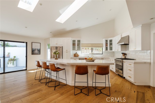 Discover a stunning single-story gem nestled in the prestigious hills of Encino, where modern elegance meets unparalleled functionality. Remodeled in 2019, this meticulously designed 2,900-square-foot residence offers 5 spacious bedrooms and 4.5 luxurious bathrooms. Step through the welcoming entryway, where skylights and expansive windows bathe the home in natural light, framing breathtaking valley views. The open-concept design seamlessly connects the formal living room, dining area, and gourmet kitchen, creating an ideal space for both intimate gatherings and grand entertaining. The state-of-the-art kitchen boasts premium Viking and Thermador appliances, custom cabinetry, and generous counter space, inspiring culinary excellence. Effortlessly blending indoor and outdoor living, sliding glass doors open to a private backyard oasis. The spacious patio is perfect for al fresco dining, while the lush lawn provides a serene setting for relaxation or play. Whether hosting lively summer soirees or enjoying quiet evenings under the stars, this outdoor haven is both inviting and versatile. The primary suite is a tranquil retreat, featuring a generous walk-in closet and a spa-inspired bathroom with dual vanities, a soaking tub, and a sleek glass-enclosed shower. Located in the coveted South of the Boulevard area, this home is within the award-winning Lanai School District and just minutes from top private schools along the Mulholland corridor. With premier shopping, dining, and easy access to Westside and Valley. Don t miss the opportunity to own a home that blends luxury with everyday practicality in one of Encino s most sought-after neighborhoods.Interested in this Listing?