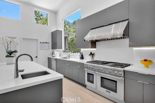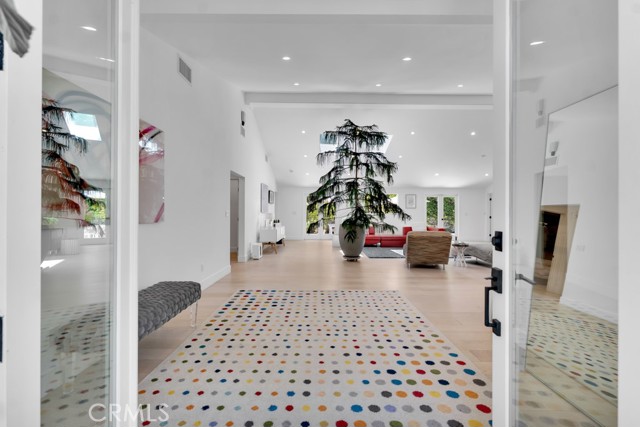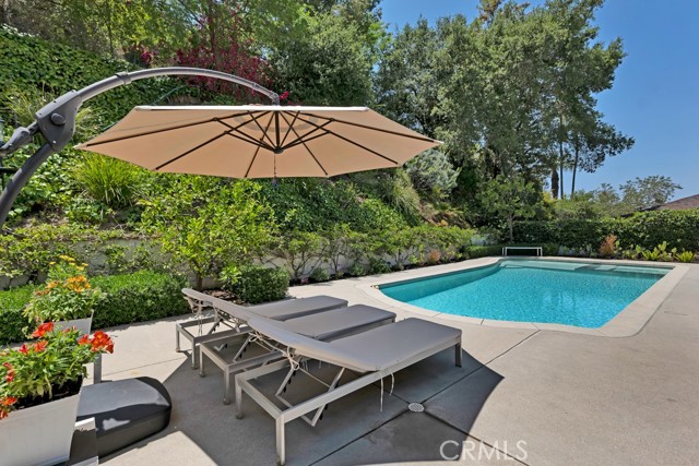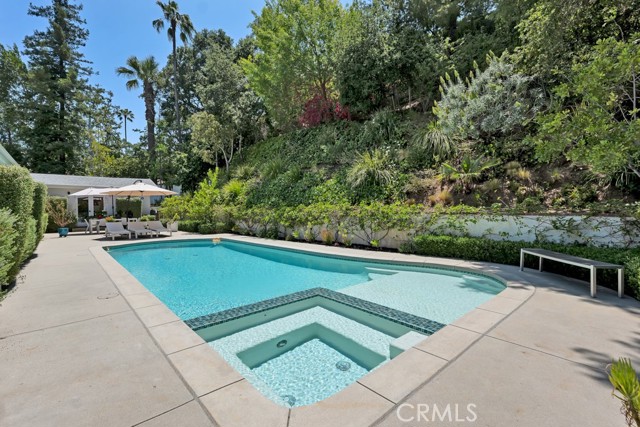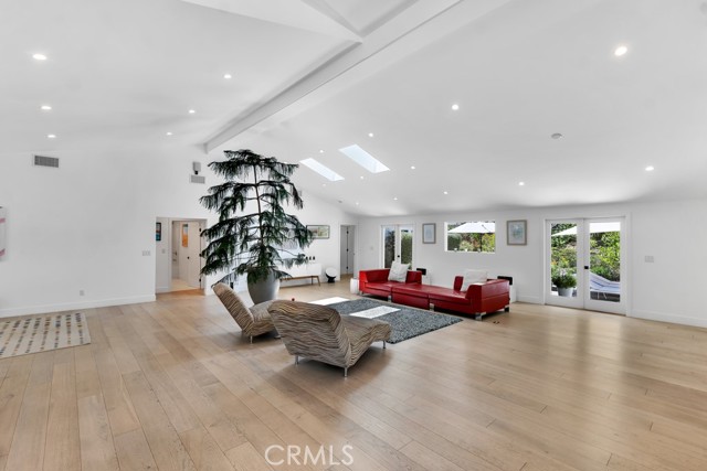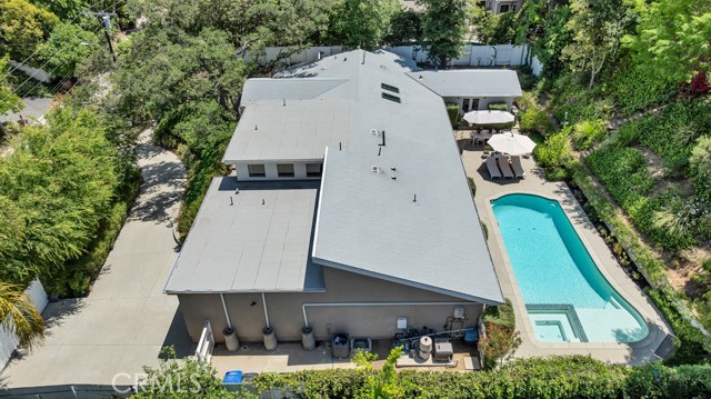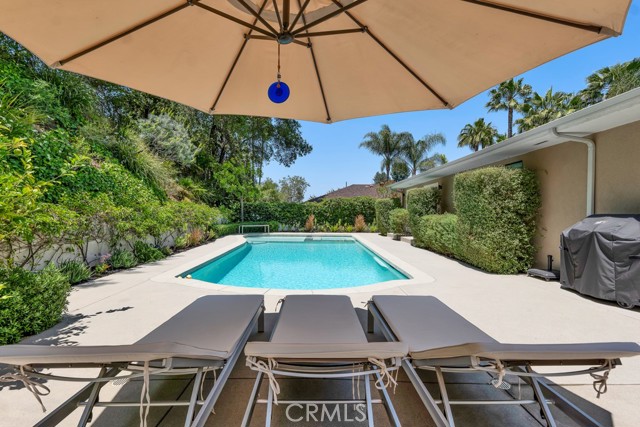 Set high above the street on a private knoll, this updated and remodeled Mid-Century Modern single-story home offers exceptional privacy and style. A graceful oak tree in the front yard enhances the curb appeal with its charm and inviting presence. Inside, soaring vaulted ceilings, skylights, and clerestory windows flood the open-concept floorplan with natural light ideal for modern living. The chef s kitchen opens to a spacious great room with a dining area and includes quartz countertops, a large island, 6-burner Thermador range with double ovens and griddle, Thermador refrigerator, dishwasher, hood, and a walk-in pantry. There are 4 bedrooms and 3.5 bathrooms, including a luxurious primary suite in its own wing with a walk-in closet and spa-like bathroom with dual sinks, a shower, and a freestanding tub. One bedroom is ensuite with its own bathroom, while two additional bedrooms share a full bath. A powder room adds convenience. Hardwood floors run throughout, and French doors open to a private backyard retreat with a pool and spa finished in glass tile. Additional highlights include a separate laundry room with sink, attached 2-car garage with epoxy flooring and Tesla charger, two HVAC units, three Nest thermostats, and two tankless water heaters. Located in the desirable Lanai Road School district with easy access to the Westside.Interested in this Listing?