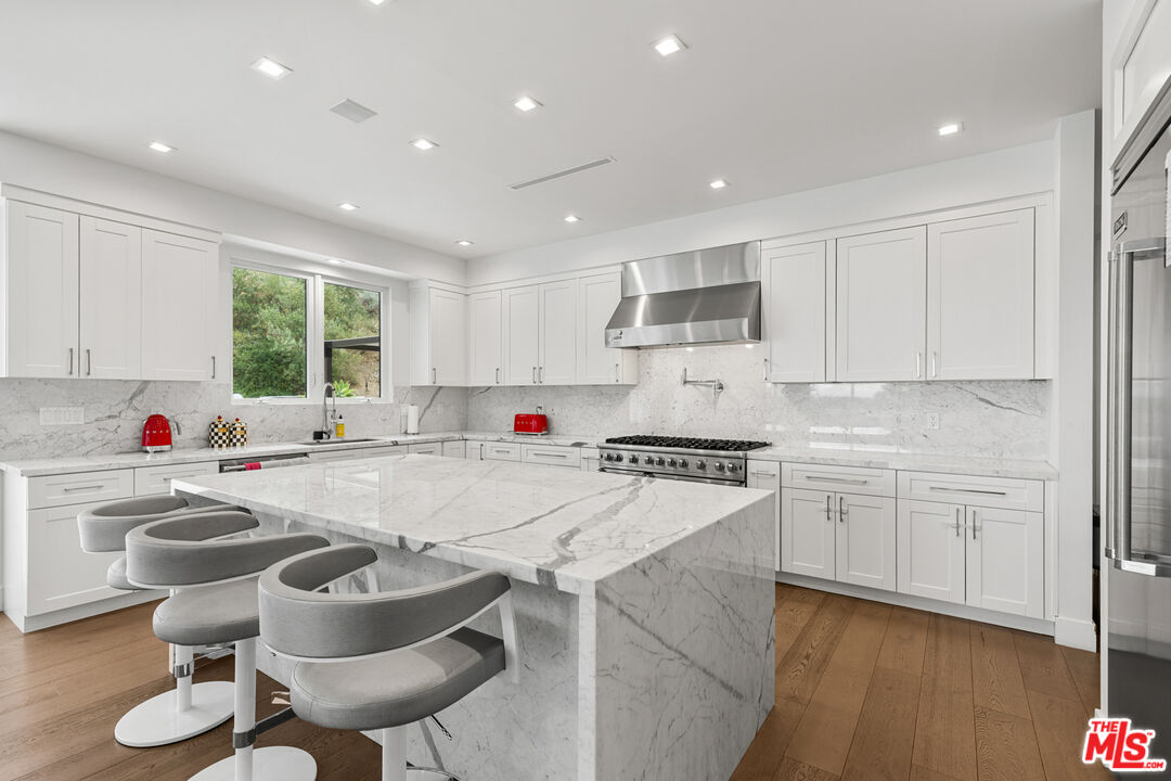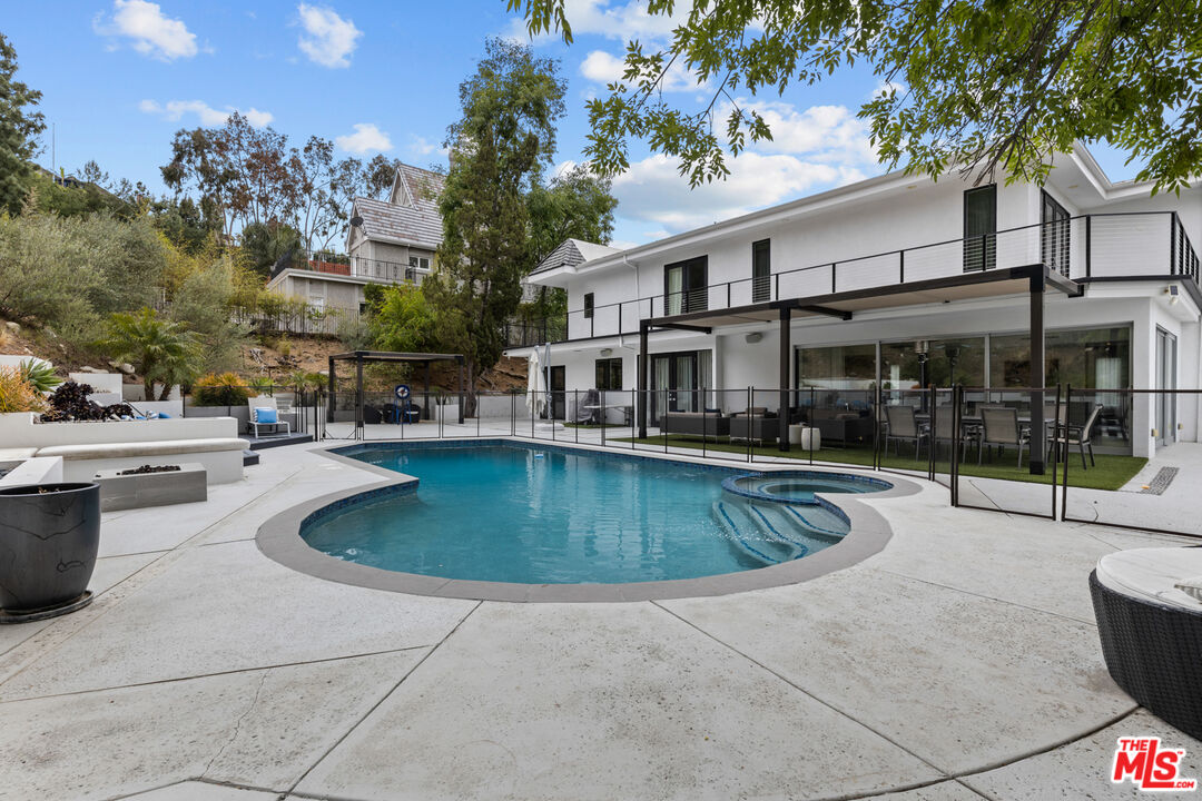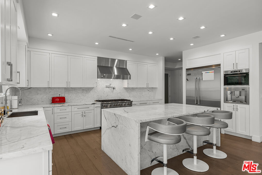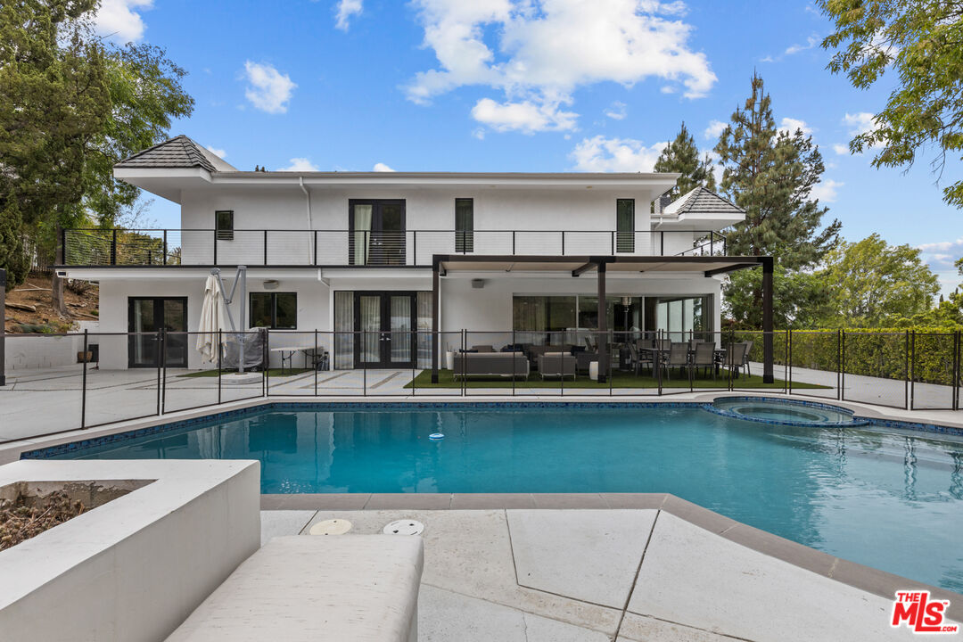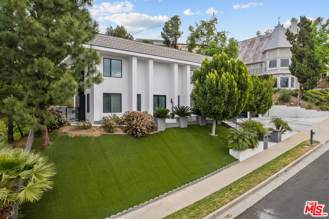Experience modern luxury at its finest at 4020 Alonzo Avenue, a striking contemporary masterpiece tucked away on a private hillside in Encino. Offering sweeping panoramic views of the city skyline and majestic mountains, this residence is the epitome of elevated living. From the moment you enter, the grand foyer with soaring ceilings and exquisite flooring sets the tone for the home's sophisticated ambiance. Expansive living spaces flow effortlessly, anchored by a dramatic fireplace and framed by oversized windows that bathe the interiors in natural light. Custom drapery and floor-to-ceiling glass walls enhance the home's seamless connection to its breathtaking surroundings.The living room opens gracefully into a refined family room, featuring a second fireplace and an inviting setting for both intimate gatherings and relaxed evenings. The chef's kitchen is a true culinary showpiece, appointed with professional-grade Viking appliances, sleek marble countertops, a generous island for casual dining, and an integrated surround sound system that elevates every experience. An adjacent formal dining room, illuminated by designer lighting, provides the perfect backdrop for elegant entertaining. For the connoisseur, a temperature-controlled wine cellar offers a sophisticated touch, ideal for hosting and showcasing your collection. Thoughtful conveniences such as a central vacuum system blend luxury with effortless functionality. With the maids room on the first level, the private primary suite, situated on the second floor, is a sanctuary unto itself featuring dual walk-in closets, a spa-inspired bath with double vanities, a soaking tub, and an expansive walk-in shower. Wrap-around balconies and a private deck extend the suite's living space outdoors, providing the perfect retreat to take in the mesmerizing views. Four additional en-suite bedrooms, each with private balcony access, ensure comfort and privacy for family and guests. The upstairs decks invite serene mornings with coffee or enchanting evenings under the stars. Outdoors, a private resort-like oasis awaits with a sparkling pool, lush landscaping, and a built-in BBQ area that seamlessly blends into the natural beauty of the hillside setting. Whether hosting lavish events or enjoying quiet weekends at home, the backdrop of city lights and rolling mountains creates an atmosphere of unrivaled serenity. Meticulously designed for those who demand the best, 4020 Alonzo Avenue offers a lifestyle of modern sophistication, comfort, and exclusivity in one of Encino's most coveted enclaves.Interested in this Listing?