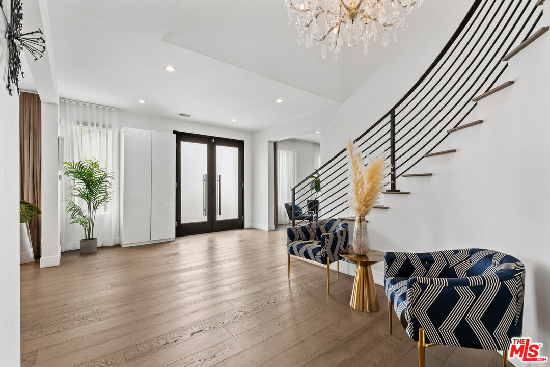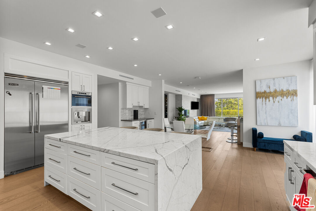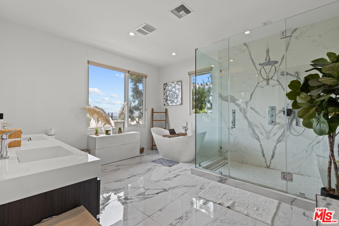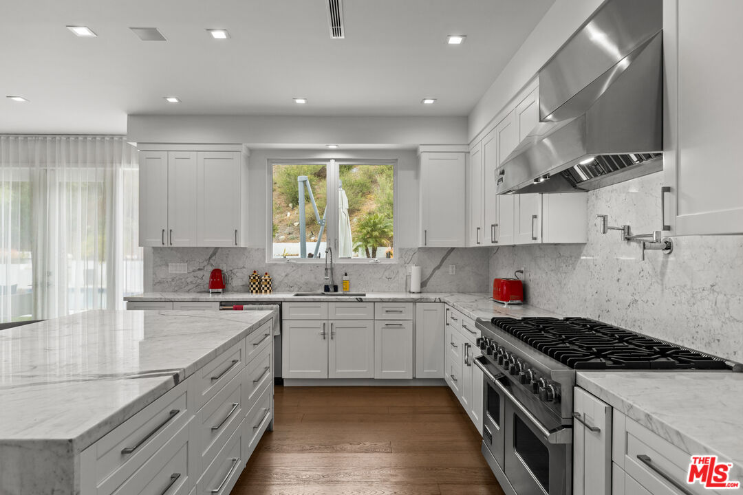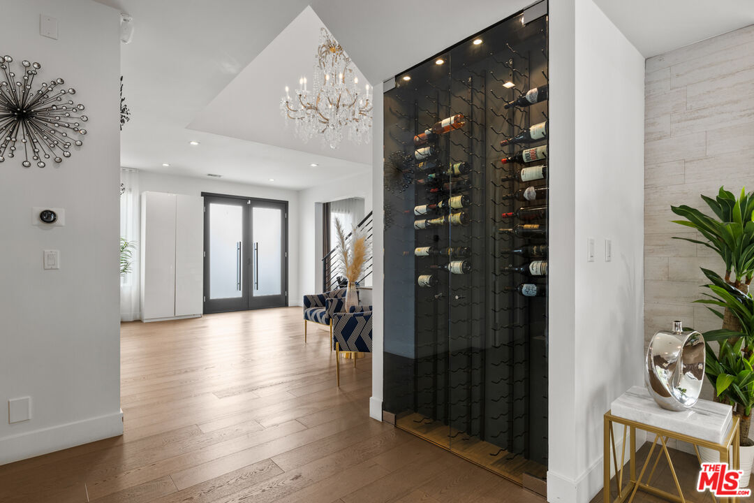 Experience modern luxury at its finest at 4020 Alonzo Avenue, a striking contemporary masterpiece tucked away on a private hillside in Encino. Offering sweeping panoramic views of the city skyline and majestic mountains, this residence is the epitome of elevated living. From the moment you enter, the grand foyer with soaring ceilings and exquisite flooring sets the tone for the home's sophisticated ambiance. Expansive living spaces flow effortlessly, anchored by a dramatic fireplace and framed by oversized windows that bathe the interiors in natural light. Custom drapery and floor-to-ceiling glass walls enhance the home's seamless connection to its breathtaking surroundings.The living room opens gracefully into a refined family room, featuring a second fireplace and an inviting setting for both intimate gatherings and relaxed evenings. The chef's kitchen is a true culinary showpiece, appointed with professional-grade Viking appliances, sleek marble countertops, a generous island for casual dining, and an integrated surround sound system that elevates every experience. An adjacent formal dining room, illuminated by designer lighting, provides the perfect backdrop for elegant entertaining. For the connoisseur, a temperature-controlled wine cellar offers a sophisticated touch, ideal for hosting and showcasing your collection. Thoughtful conveniences such as a central vacuum system blend luxury with effortless functionality. With the maids room on the first level, the private primary suite, situated on the second floor, is a sanctuary unto itself featuring dual walk-in closets, a spa-inspired bath with double vanities, a soaking tub, and an expansive walk-in shower. Wrap-around balconies and a private deck extend the suite's living space outdoors, providing the perfect retreat to take in the mesmerizing views. Four additional en-suite bedrooms, each with private balcony access, ensure comfort and privacy for family and guests. The upstairs decks invite serene mornings with coffee or enchanting evenings under the stars. Outdoors, a private resort-like oasis awaits with a sparkling pool, lush landscaping, and a built-in BBQ area that seamlessly blends into the natural beauty of the hillside setting. Whether hosting lavish events or enjoying quiet weekends at home, the backdrop of city lights and rolling mountains creates an atmosphere of unrivaled serenity. Meticulously designed for those who demand the best, 4020 Alonzo Avenue offers a lifestyle of modern sophistication, comfort, and exclusivity in one of Encino's most coveted enclaves.Interested in this Listing?