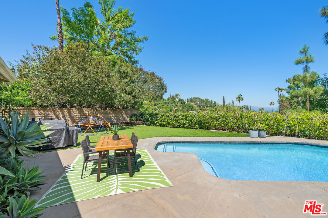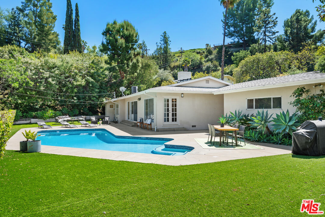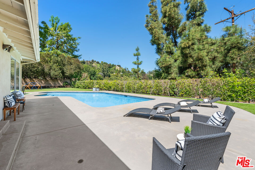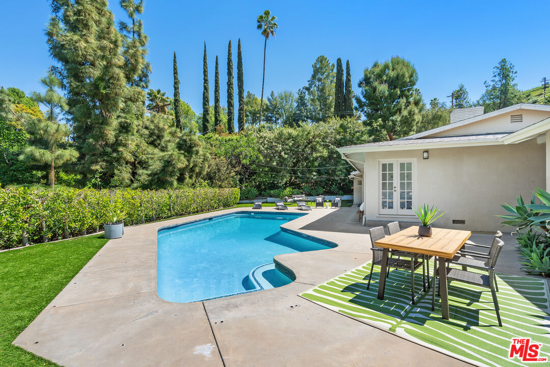 Welcome to 4450 Coronet Drive, an expansive, single-story ranch retreat nestled on a quiet street in the heart of Encino Hills. Just moments from Ventura Boulevard's vibrant dining, shopping, and entertainment scene, with quick access to Mulholland and the Sepulveda Pass for an easy Westside commute, this home offers the best of both worlds.Set on an impressive 15,000+ sq ft lot, this mid-century gem spans over 2,500 square feet and features a spacious, family-friendly layout that effortlessly blends iconic 1950s design with the California indoor-outdoor lifestyle.Flooded with natural light through floor-to-ceiling glass, the main living area showcases green views from every window. A large living room with vaulted ceilings and sliding glass doors opens directly to the backyard, creating a seamless entertainer's flow. The separate dining room offers a picture window framing the San Fernando Valley, French doors to the patio, and a custom built-in hutch.The galley-style kitchen with an eat-in breakfast nook is ready for your vision, an ideal space to design your dream kitchen. There are three over-sized bedrooms plus a generously sized den or office that could easily serve as a fourth bedroom. Ample closet and hall storage space add to the home's practical appeal.Newer hardwood floors and a freshly painted interior provide a clean, move-in-ready canvas. Step outside to a private backyard oasis featuring a sparkling pool, multiple patios for entertaining, and two artificial turf areas perfect for play, lounging, or enjoying the peaceful, lush surroundings. Take in sweeping Valley views and enjoy a front-row seat to the 4th of July fireworks show.Additional highlights include a detached two-car garage with a covered breezeway leading directly to the kitchen. Fireplace is decorative only and has not been used by the sellers.Offered as-is, this is a rare opportunity to capture a slice of mid-century magic and re-imagine it into your next-generation dream home.Interested in this Listing?