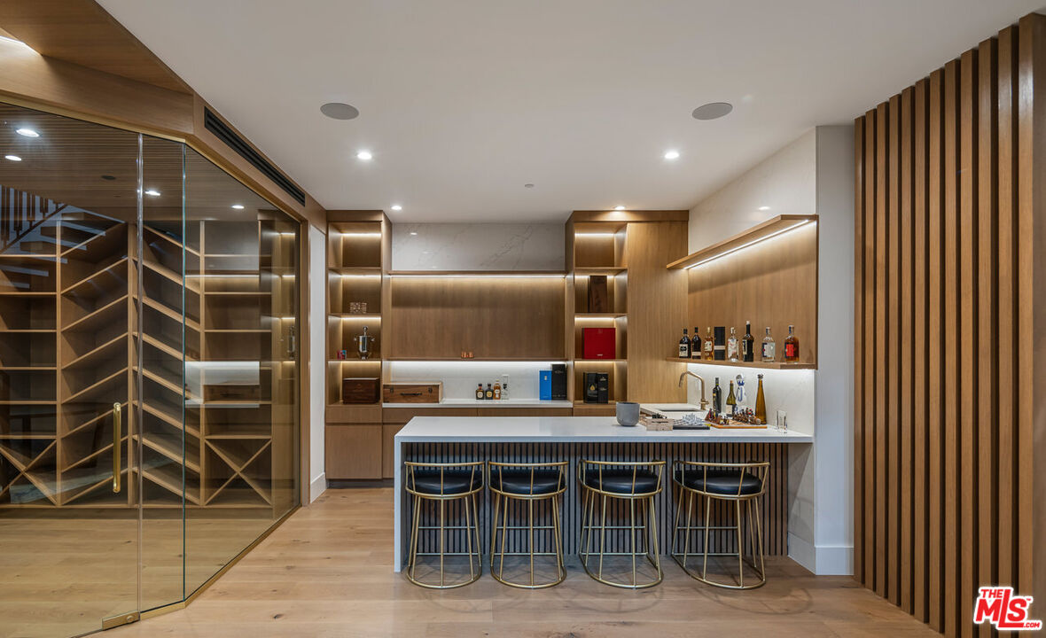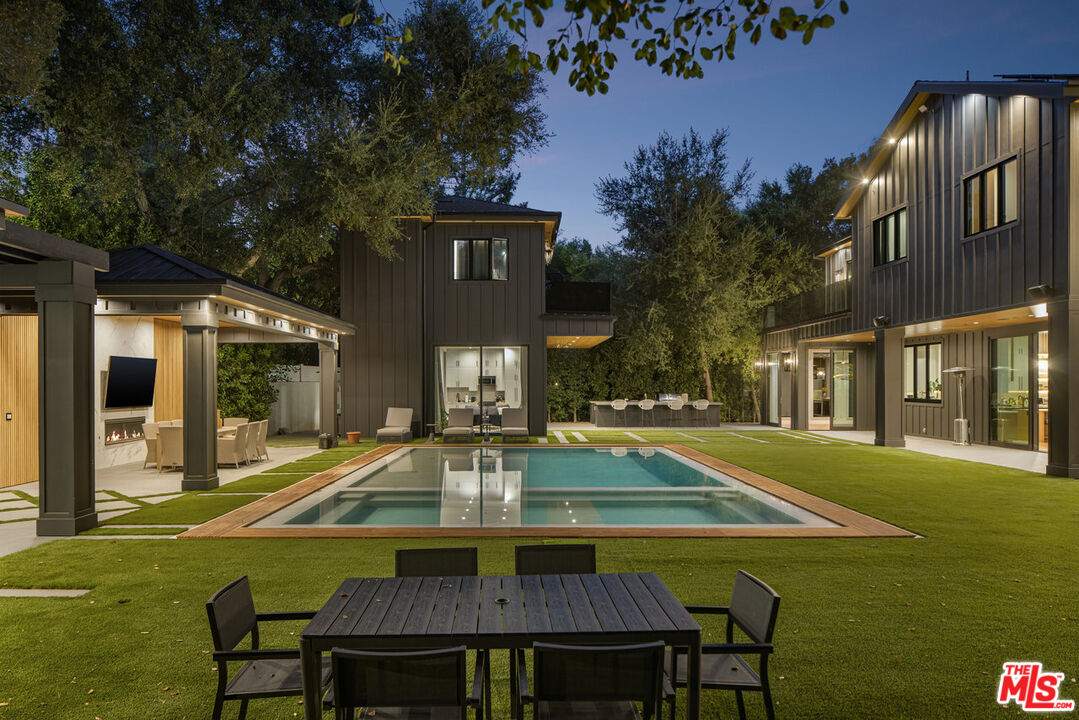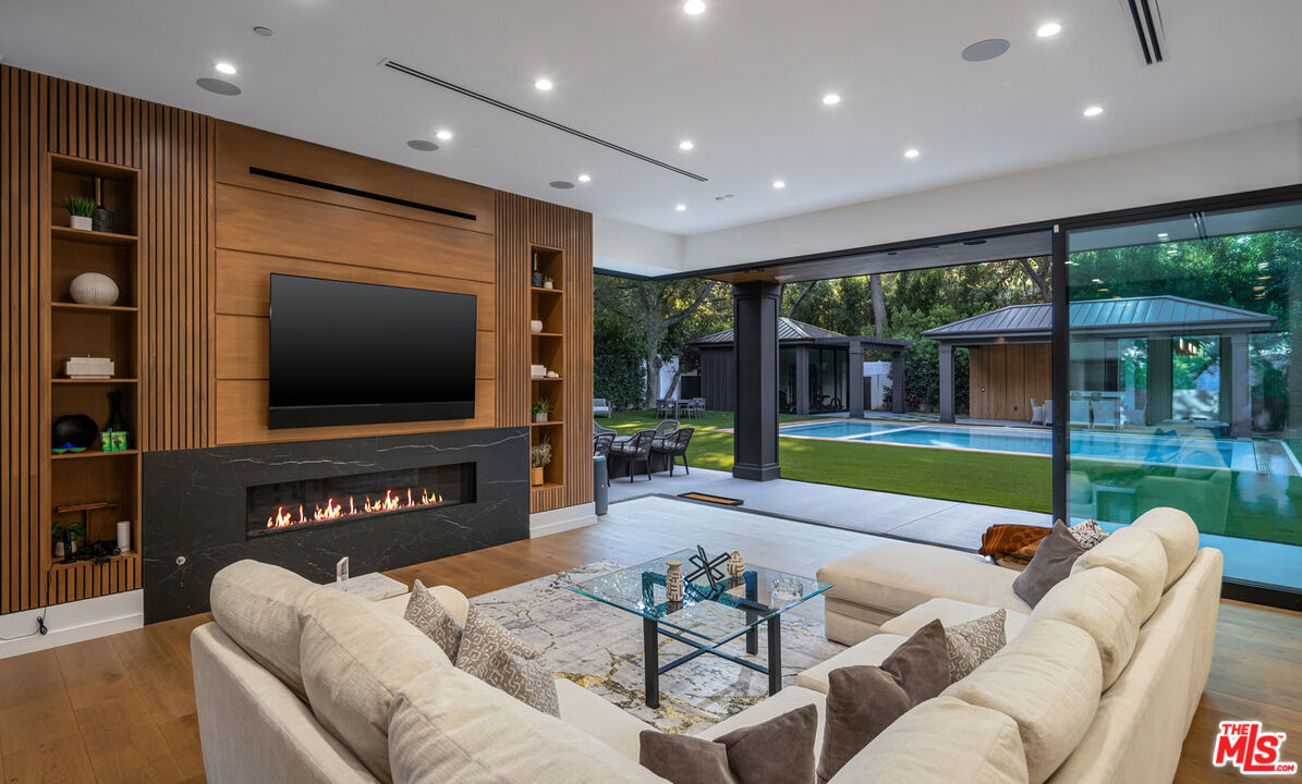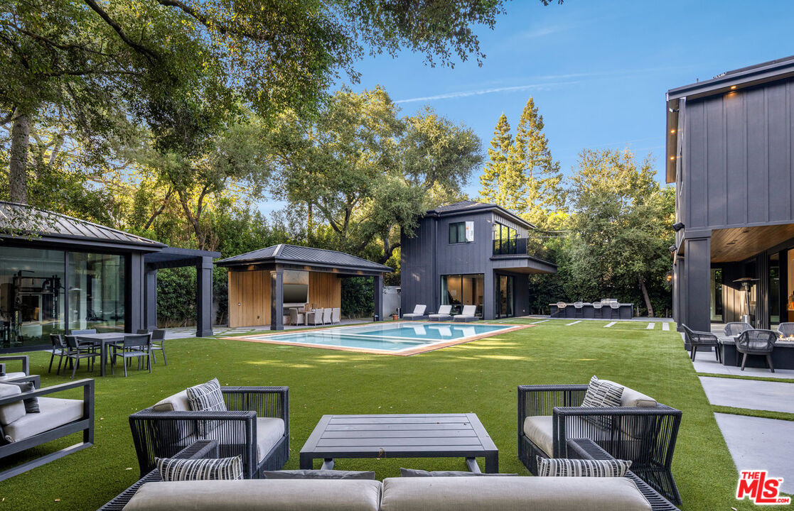 Welcome home to this luxurious private estate nestled in a prestigious neighborhood of Encino. This gated residence features an ideal blend of modern elegance and nature's magnificence. Situated on a half an acre corner lot ,this breathtaking property is surrounded by towering oak and cypress trees. Enter the main house through a magnificent 20 ft door to discover a massive open-concept living space, featuring soaring ceilings and walls of glass. The spacious family room flows seamlessly into a massive chef's kitchen, equipped with Miele stainless steel appliances, sleek oak cabinetry, and dual islands. The three level home offers generous sized bedrooms, including a luxurious primary suite with a fireplace, SHOW STOPPING dual walk-in closets along with dual en-suite bathrooms. An elevator takes you to the basement transformed into its own private retreat. Here you'll find an oversized screening room, a temperature controlled wine room, a wellness center with indoor spa, and additional ensuite bedrooms. Each room provides a serene retreat and beautiful views of the landscaped surroundings. Giant sliding glass doors open up into a large backyard oasis where you'll find a sparkling Zero edge pool and spa flanked by multiple curated areas for entertaining including an elegant pavilion and pool house. The 1134 sf two story guest house is as beautifully crafted as the main house. The estate is equipped with an advanced security system. Photos do not begin to capture the magnificence of this gated estate that combines soul, style, and substance. Shown by appointment to qualified buyers only.Interested in this Listing?