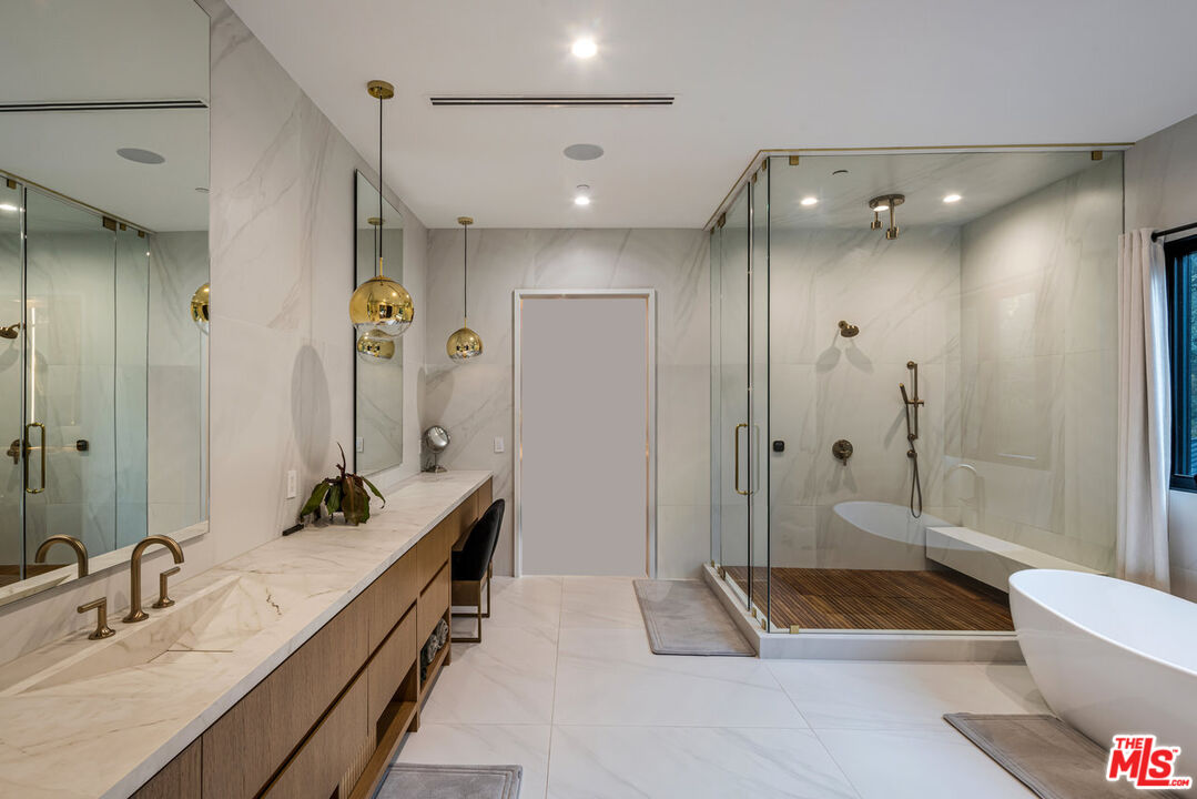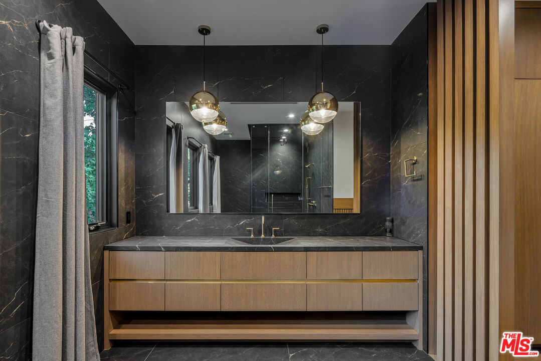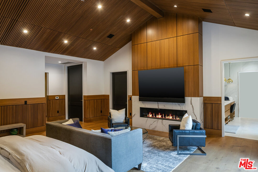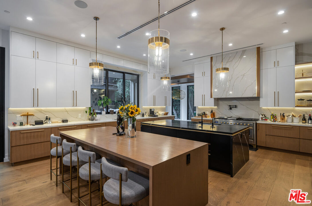 Welcome home to this luxurious private estate nestled in a prestigious neighborhood of Encino. This gated residence features an ideal blend of modern elegance and nature's magnificence. Situated on a half an acre corner lot ,this breathtaking property is surrounded by towering oak and cypress trees. Enter the main house through a magnificent 20 ft door to discover a massive open-concept living space, featuring soaring ceilings and walls of glass. The spacious family room flows seamlessly into a massive chef's kitchen, equipped with Miele stainless steel appliances, sleek oak cabinetry, and dual islands. The three level home offers generous sized bedrooms, including a luxurious primary suite with a fireplace, SHOW STOPPING dual walk-in closets along with dual en-suite bathrooms. An elevator takes you to the basement transformed into its own private retreat. Here you'll find an oversized screening room, a temperature controlled wine room, a wellness center with indoor spa, and additional ensuite bedrooms. Each room provides a serene retreat and beautiful views of the landscaped surroundings. Giant sliding glass doors open up into a large backyard oasis where you'll find a sparkling Zero edge pool and spa flanked by multiple curated areas for entertaining including an elegant pavilion and pool house. The 1134 sf two story guest house is as beautifully crafted as the main house. The estate is equipped with an advanced security system. Photos do not begin to capture the magnificence of this gated estate that combines soul, style, and substance. Shown by appointment to qualified buyers only.Interested in this Listing?