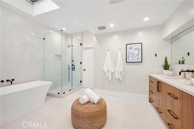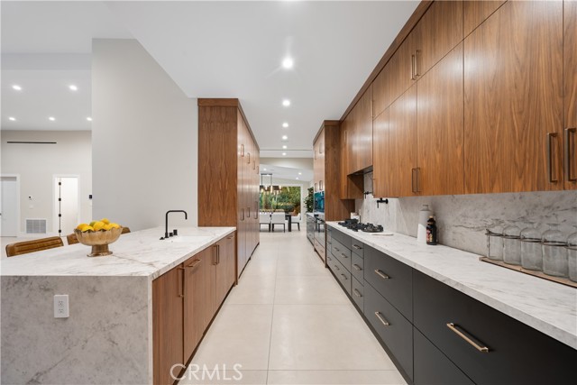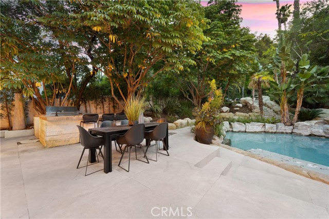A truly spectacular custom contemporary modern located south of The Blvd in Encino. Past the circular gated driveway into the covered entrance; Guests are greeted into a foyer that opens directly to an architectural staircase polished living room with custom built-ins and floor-to-ceiling pocket sliding doors that open to the entertainer's oasis in the back. A Gourmet Chef s kitchen boasts Italian porcelain countertops, breakfast bar, farm sink, stainless-steel appliances, a walk-in pantry, and accordion windows perfect for BBQ pass-throughs and dining. Adjacent to the kitchen we have a stunning dining room with built-ins and a large picture window that emits tons of natural light. 5 bedrooms including a second primary suite and state of the art media room complete the first floor. Upstairs, the lavish primary retreat with high ceilings, fireplace, spacious his and hers large walk-in closets, and primary bathroom with dual vanity, soaking tub, and massive standing glass rain shower. An additional upstairs bedroom complete with sundeck and gym complete the second floor. The movie theater room is the perfect space for entertainment. Entertain year-round featuring sparkling pool & spa with waterfall features and serpentine waterslide and an abundance of patio space perfect for al fresco dinners and tons of elevated spaces with mature landscape for fun and total privacy. This house has been completely redone, and everything is brand new! Additional luxuries include integrated control 4 smart home system and security system. Enjoy what Encino has to offer! Close to shops, fine dining, and more.Interested in this Listing?