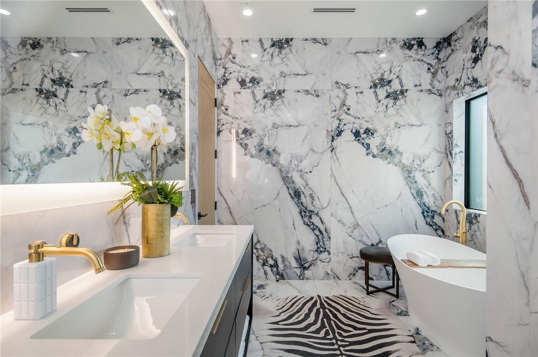 Welcome to a sanctuary of modern luxury, an architectural masterpiece designed for discerning homeowners who appreciate the finest details. This stunning property features fine wooden floors flowing throughout, complemented by elegant European features. Step through the grand entrance to be greeted by a majestic staircase, adorned with large quartz panels and smart LED lights. Each room in this exquisite home leads to the most elegant and sophisticated bathrooms imaginable, showcasing a distinguished taste for refined finishes. The main room is anchored by a spectacular fireplace, framed by a gigantic quartz stone. This flows seamlessly into a living area featuring a wine cellar that embodies artistic opulence. Subtle connections lead to a chef s dream kitchen, equipped with the most sophisticated appliances on the planet. A second living space offers a refreshing contrast, perfect for indulging in freedom. Enjoy a drink at the bar, challenge friends on the pool table, or break a sweat in the gym before gazing at the stars in the dedicated room. Modern pocket doors seamlessly connect this space to a sparkling swimming pool with a Jacuzzi, creating the ultimate entertaining haven. Features throughout the home include speakers wired throughout the entire home, including in the pool/Jacuzzi area, a modern security system, WiFi extenders throughout the home, Apple iPad tablets to control home systems, and two AC units for optimal climate control. This property also includes a brand new second living space, perfect for guests or extended family. Experience the pinnacle of luxury living in this extraordinary home, where every detail has been meticulously crafted to offer a lifestyle of unparalleled elegance and sophistication.Interested in this Listing?