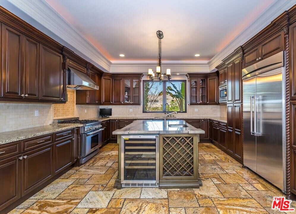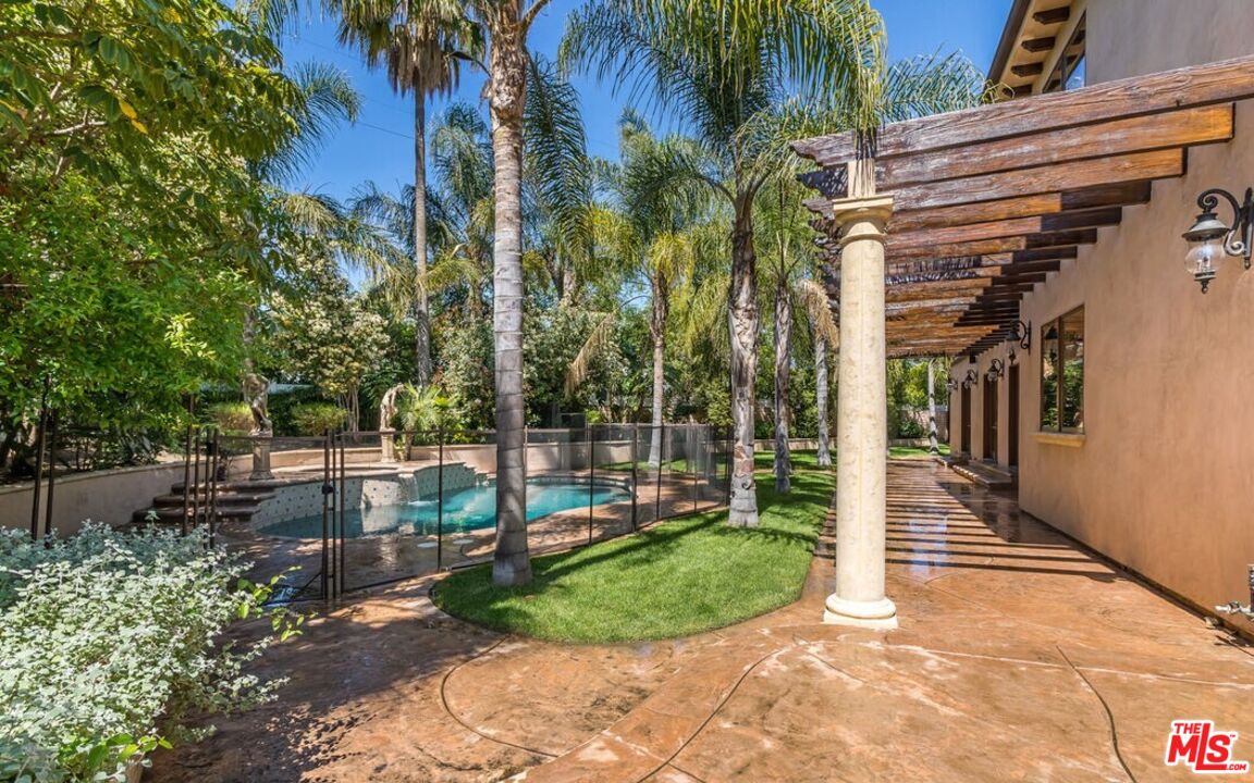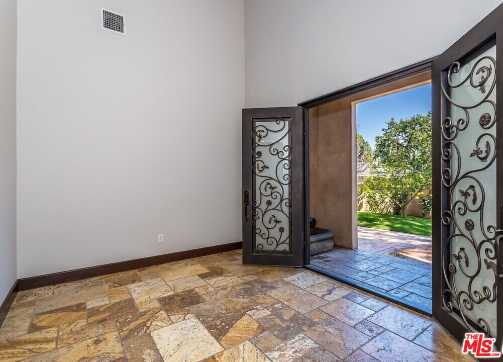 Located in this prime area of Amestoy Estates is this amazing Private Mediterranean style estate property. Enter to the exceptional 2 story formal entryway enhanced with natural stone and custom iron doors. Open and bright with 2 Story ceilings throughout featuring exposed beams and crown molding. Stone flooring is tastefully mixed with distressed wood flooring with a seamless flow throughout. The cooks kitchen has top of the line appliances, a huge center island with sink, built in wine storage and wine fridge and plenty of space on the stone counters and custom cabinets. The en-suite bedrooms are all spacious and the master should not be missed. Featuring a custom bathroom with double sinks, large walk-in shower and huge bathtub plus 2 spacious walk-in closets. There's a large family room with fireplace and balcony. The entertainers backyard has a covered patio, sparkling pool and spa plus plenty of grassy yard. This amazing home will not disappoint even the most discerning clients. Some of the photos are done with AI Virtual staging.Interested in this Listing?