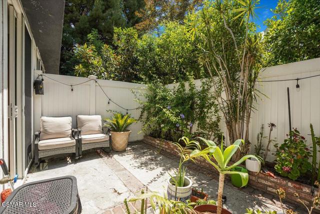 Rare find! A townhome style condominium on a corner in a very desirable Encino location with nice neighborhood views. This home boast 2 large fenced private patios accessible by large dual pane sliding glass doors. One patio is at the front of the home. The second patio is adjacent to the dining area. The two patios bathe the home with natural light. The patios provide room for outdoor seating areas where you can relax while enjoying a cup of coffee or cool beverage. The spacious downstairs living area includes a gas burning decorative fireplace and plenty of room to relax. The downstairs bathroom and kitchen have been nicely upgraded with newer countertops. The clean functional kitchen overlooks the dining area and includes plenty of counter space for food preparation. The large built in cabinets provide plenty of storage space and provide ambiance to the dining area. As you continue upstairs, you will see a skylight, a main bath with a granite vanity countertop, an indoor stackable laundry area, and two bedrooms. The primary bedroom opens to a large private balcony that offers a nice view of the surrounding community. The bedroom opens to an ensuite bath with a granite vanity countertop. The bathroom skylight provides a very nice touch by keeping the room bright during daylight hours. In the common area you will find a nice relaxing pool and an exercise room. Two assigned side by side garage spaces (28 &29) with overhead storage are located in the gated subterranean garage. The HOA includes water, trash, sewer, plus common area maintenance. This home is in a great location close to shopping, near convenient freeway access, and offers privacy plus nice private outdoor areas.Interested in this Listing?