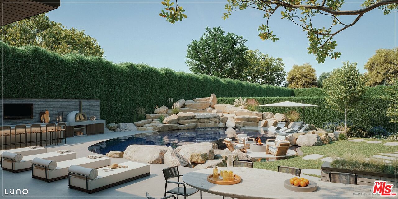 The Encino Estate. Good things come to those who wait. Meticulously conceived, acclaimed architects Luno Design have finalized award-winning permitted plans for an incredible 23,000+ square feet Mid-Century modern oasis nestled between 100-year-old California oak trees, on a gloriously gorgeous, pancake-flat 1.2 acre site. Shovel-ready, this classic residence pays homage to the Japanese-inspired aesthetic of the great Frank Lloyd Wright. Roof planes of bronze and mahogany seem to float between the brick volumes of the house. A custom brick screen design becomes a signature feature of the home that reveals itself across the property. The home meanders across the property creating and revealing a multitude of unique outdoor living spaces. Sited on the best streets in Encino's famed "Rancho Estates," a guard house keeps secure watch over the entrance to the very private estate. The main residence spans two stories over a full basement. On the second level, there are 5-bedroom suites nestled into the canopies of the oak trees; the master suite is accessible through a grand art gallery opening up to the rear yard, with views of a sheltered master terrace with its own private fire-pit lounge. The basement of this home offers entertainment options rarely offered on any private residence-a gaming area and climbing wall are at the center of the lower-level entertainment area. A fifteen-seat theater provides a luxurious in-home cinematic experience while a multi-sport (Golf, Soccer, Skiing) simulator room provides mind-blowing entertainment. In a private wing of the basement is the best spa where you could ever dream of pampering yourself - a makeup & hair salon, steam room, sauna, plunge pools, and massage room. Designed as natural oasis, with natural rock-boulders and waterfalls, the pool acts as a counterpoint to the more angular geometries of the home. The pool is flanked by an outdoor kitchen and bar with barbecues and a pizza oven. At the rear of the property is the pickleball court and gym pavilion. A 25 meter lap pool doubles as a beautiful water feature backdrop for the pickleball court. The gym pavilion offers a huge state of the art workout facility. A hidden surprise of this property is the basement of the gym pavilion that is outfitted with a two-lane bowling alley, billiards and poker room, bar, and a blank space studio which can be a designated space for yoga or perhaps a music studio. The property accommodates 5 in-house staff with separate their own separate entry, and a Kosher kitchen. The detached guest house off of the motor court doubles as a remote office; just far enough removed from the main house to feel like a private retreat. This opportunity offers everything you need, all that you ever wanted or dreamed about, plus luxuries that you didn't even know were possible. The classic design of the home and 100-year oaks make it feel as if this property has existed for decades. The materials and details of this home add to its timeless quality. Your opportunity to take this inspiration to your own personal level. Also available, 17121 Rancho - The Rancho Residence. This Montecito Style, 18,000 sq. ft. estate features 8 beds, 15 baths (10 full, 5-half baths), sits on a 46,348 sq. ft. lot, is offered at $29,999,999.Interested in this Listing?