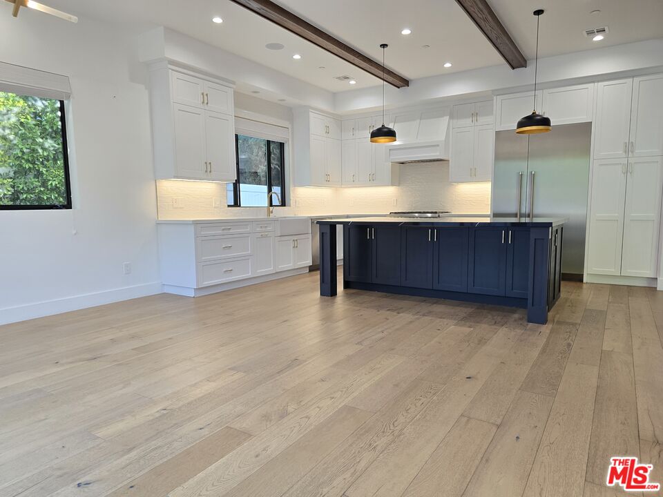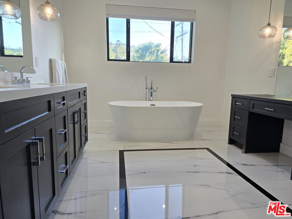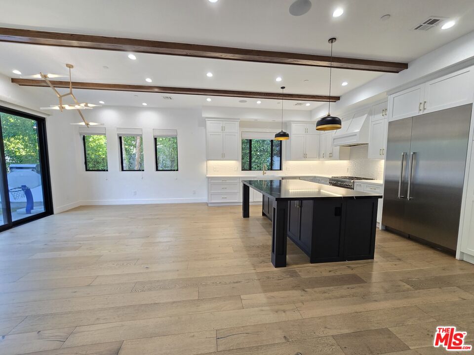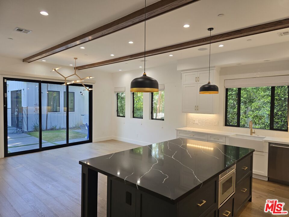 Experience luxury living in this elegant and inviting modern farmhouse, located in the very desirable area of Encino South! Perfectly crafted for discerning tenants, this property offers an unparalleled lifestyle with exquisite designer finishes and top-of-the-line amenities. Five bedrooms 4.5 baths in the main house and a lovely detached cabana off the pool and spa area with its own bath. A truly spectacular kitchen boasting quartz countertops, ample cabinets, and stainless steel Thermador appliances opens to the living room with fireplace, showcase wine closet display and dining area overlooking lovely yard with pool and water falling spa. High ceilings and oversized doors and generous windows give this light and bright home the feeling of space and height. The primary bedroom retreat has a spa-like feel with vaulted beamed ceilings a cozy fireplace, two large walk-in closets and a private balcony. Your spa experience continues in the en-suite bath with double vanities plus a make-up vanity, a walk-in shower, and sublime soaking tub. The backyard is designed with ample areas for swimming, playing, lounging and dining as well as a built-in BBQ. Centrally located in prime Encino south of the Boulevard, just minutes to the 101 and 405 freeways, this private retreat is ideally situated close to restaurants, stores, entertainment and groceries for convenient living. Relax at home, or step out for nearby services - this home has it all!Interested in this Listing?