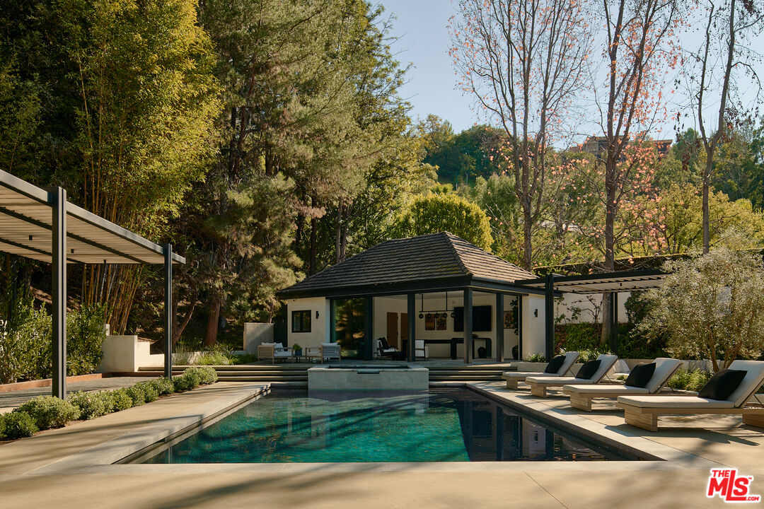 Traditional architecture that relates to present California Living. This reimagined Encino estate sits behind gates within the Royal Oaks Colony. One of only eighteen homes behind the 24-hour guard gated community, the property itself is surrounded by trees and a hillside providing the ultimate element of privacy. The interior palette combines raw material such as natural stone and plaster with soft textile elements. The building's original entry has been re-clad in natural wood to both elevate its design an signify the coming together of old and new. Walls of glass both in the kitchen and living room allow the interior and exterior to blend seamlessly. Sumptuous primary suite with fireplace, balcony, private gym, dual closets and editorial level bath with dual W/C. Hand selected finishes through the property. Additional features: Pool house, 4-car garage, wine cellar, custom theater, office, shampoo room, gym, sauna and bocce court. Photos show previously staged furniture.Interested in this Listing?