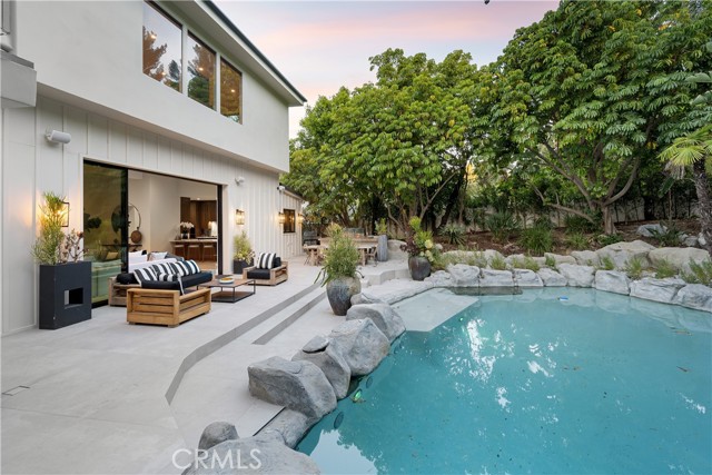 A truly spectacular custom contemporary modern located south of The Blvd in Encino. Past the circular gated driveway into the covered entrance; Guests are greeted into a foyer that opens directly to an architectural staircase polished living room with custom built-ins and floor-to-ceiling pocket sliding doors that open to the entertainer's oasis in the back. A Gourmet Chef s kitchen boasts Quartz countertops, breakfast bar, farm sink, stainless-steel appliances, a walk-in pantry, and accordion windows perfect for BBQ pass-throughs and dining. Adjacent to the kitchen we have a stunning dining room with built-ins and a large picture window that emits tons of natural light. 4 bedrooms including a second primary suite and state of the art media room complete the first floor. Upstairs the lavish primary retreat with high ceilings, fireplace, spacious walk-in closet, and primary bathroom with dual vanity, soaking tub, and massive standing glass rain shower. An additional upstairs bedroom complete with sundeck and gym complete the second floor. Entertain year-round featuring sparkling pool & spa with waterfall features and serpentine waterslide and an abundance of patio space perfect for al fresco dinners and tons of elevated spaces with mature landscape for fun and total privacy. Additional luxuries include integrated control 4 smart home system security system. Enjoy what Encino has to offer! Close to shops, fine dining, and more.Interested in this Listing?