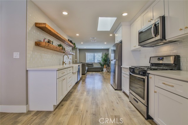 Welcome to this beautiful 4 Bedroom 2 Bathroom home, in the highly desired city of Gardena. New roof and HVAC system installed in 2020. Pluming updated in 2022, the entire home is renovated and ready to welcome new owners. The Kitchen features quartz counter tops with pine wood floating shelves. As you enter the home the open space connecting the living room with the kitchen make it for a great entertainment area. The master suite features a double vanity with custom tile throughout the shower. Featuring an attached 1 car garage, with plenty of space for additional parking in the drive way.Interested in this Listing?