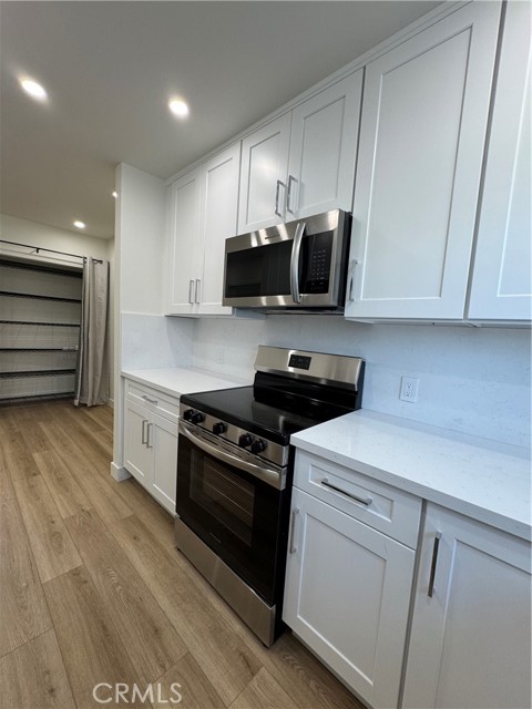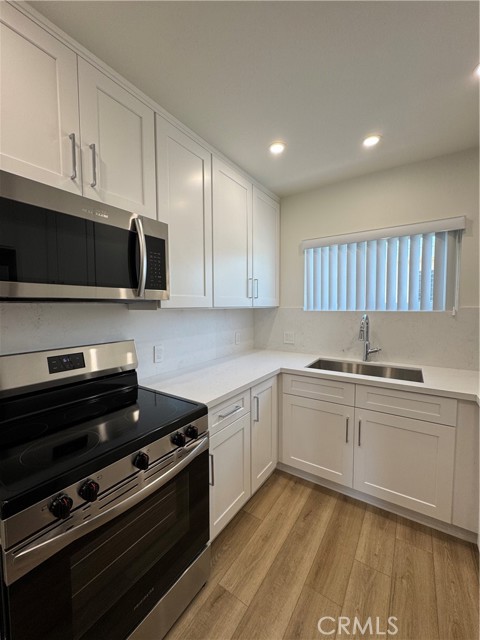Newly Remodeled 1 Bedroom, 1 Bathroom + living room with additional den / office nook area. Very open and spacious. Located in the back building of a Small 9 unit apartment complex with Gated parking in the Fabulous Central Pacific Square area of Gardena near shopping and eateries ! No one located above or below you! The new kitchen includes white shaker cabinets, quartz kitchen countertops, new Stainless steel appliances and refrigerator, and new plumbing fixtures, The remodeled Bathroom includes a new vanity, medicine cabinet, mirror , clear glass shower door, and plumbing fixtures. Plank Style flooring, recessed lighting, and Freshly painted throughout. Don't miss this one.
