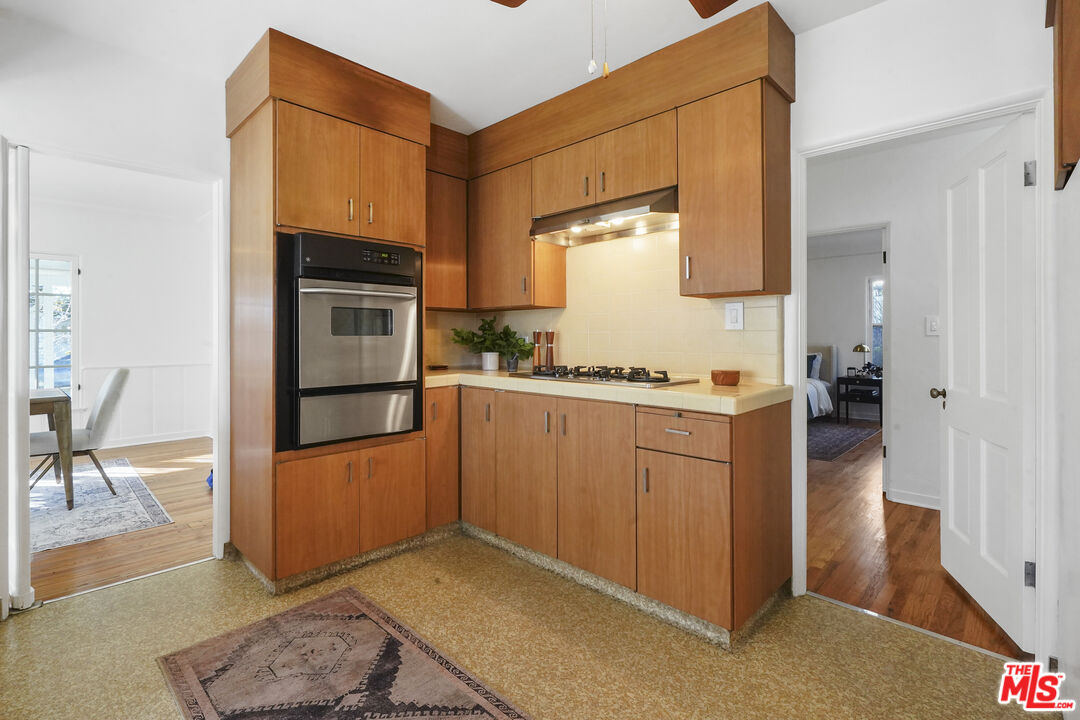A rare offering awaits you at 1314 Norton, nestled in the heart of the coveted Glenwood neighborhood in northwest Glendale. This gem sits proudly on a tree-lined street, where the charm of a brick facade and red brick walkway welcomes you home. Step up to the inviting porch, a prelude to the warmth and character that awaits inside. As you enter, the living room greets you with its peg and groove hardwood floors, casting a glow of natural warmth and elegance. Original French windows frame views of the serene outdoors, while the fireplace promises cozy evenings. The kitchen is a spacious galley bathed in light from large windows. Attached is a breakfast nook, perfect for morning coffee or casual meals, with direct access to the outdoors for when the weather invites you to dine under the sky. A formal dining room stands ready to host your most memorable gatherings, where every meal becomes a special occasion. This home boasts three generously sized bedrooms, each with the same beautiful hardwood floors that flow throughout the house. The homes feature 2 full bathrooms, one which features a separate bath and shower adorned with vintage tiles. The two rear bedrooms offer direct access to the backyard and lead to a covered patio. Here, the inside and outside merge, providing a seamless transition to the park-like grounds. The backyard, a vast canvas of greenery, features a large mature tree that adds to the property's sense of tranquility and privacy. Beyond the home's immediate comforts, the lot spans an impressive 12,051 square feet, offering ample space for outdoor activities, gardening, ADU addition or simply enjoying the California sun. A cement sports court with night lights sits at the rear of the lot. The workshop behind the detached two car garage presents a world of possibilities for hobbies, crafts, or additional storage. Built in 1935, this ranch-style residence blends historical charm with the functionality desired by today's homeowner. Its timeless architecture, combined with the allure of its surroundings, makes 1314 Norton not just a house, but a place to call home.