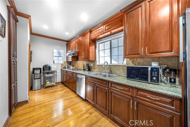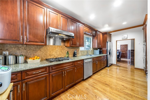 Step into this beautiful unique 14,845 sq ft lot, 3,154 sq ft Mediterranean style home tucked away in the Chevy Chase Canyon area. Completely gated for PRIVACY and RELAXATION. This property offers 3 bedrooms and 3.5 baths with a large, one of kind CUSTOM BUILT bar. WOOD FLOOR finish through out the home. Two entrances, one to the BAR and the other direct to Living Room with Fireplace. GUEST AREA with a lot of natural lighting, Dining Room, full KITCHEN with custom WOOD CABINETS, granite countertops with a breakfast nook area. All Bedrooms upstairs with a shaded PATIO DECK. A 495 sq ft GUEST HOUSE, offers a SPACIOUS open bedroom and living area with a full bathroom, MINI BAR, and a stunning JACUZZI tub. Large front yard, 2 car garage with a large area to park up to 6 cars. Several outdoor seating areas, BARBECUE area, storage units & cascading WATERFALL. Full BASEMENT connecting to the garage. TRULY CAPTURES THE ESSENCE OF SO CAL LIVING. One of a kind GEM not to be missed!!!Interested in this Listing?