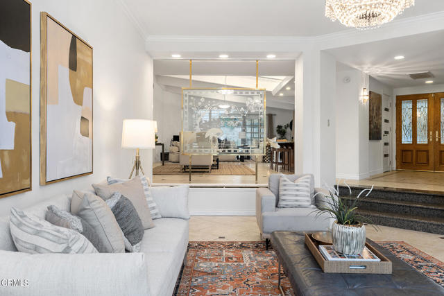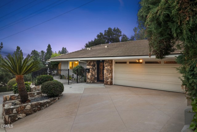 Exceptional opportunity in Glendale's prestigious Oakmont Country Club neighborhood! Sited on an elevated lot mere feet to Oakmont's premier golf, dining, and social experiences, this single level, 4 bedroom, 4.5 bath home is completely remodeled and features a detached guest suite. With generous spaces for grand entertaining or casual living, this remarkable property is highlighted by an expansive inner courtyard, country club views, large and versatile social spaces, and numerous sliders which fill the home with natural light. The interior formal entry ushers you into a vast living room with fireplace and sizable bar or the step-down family room wrapped in windows overlooking golf course oaks. An expanded kitchen features a large Viking stove, stone counters, separate pantry, and opens to a versatile space ideal for dining or a comfortable den. The spacious primary suite includes a dream walk-in closet and an extra-large bath with luxurious spa-shower. Another bedroom suite with custom walk-in closet and its own dedicated bath, and a third bedroom with fireplace directly adjacent to a large hall bath offers an ideal layout for all your needs. The fourth bedroom is a detached suite connected through the courtyard, perfect for a home office, guest unit, or in-law quarters. The property has solar panels (paid for!), central HVAC, 2-car garage, and a low maintenance gated yard featuring a built-in BBQ area. This updated mid-century ranch is a dream come true and epitomizes the California Country Club lifestyle!Interested in this Listing?
