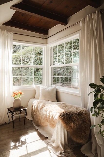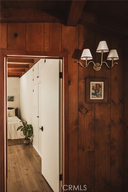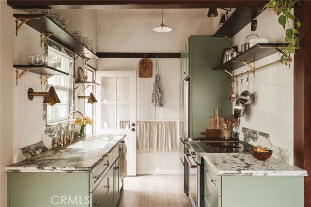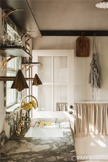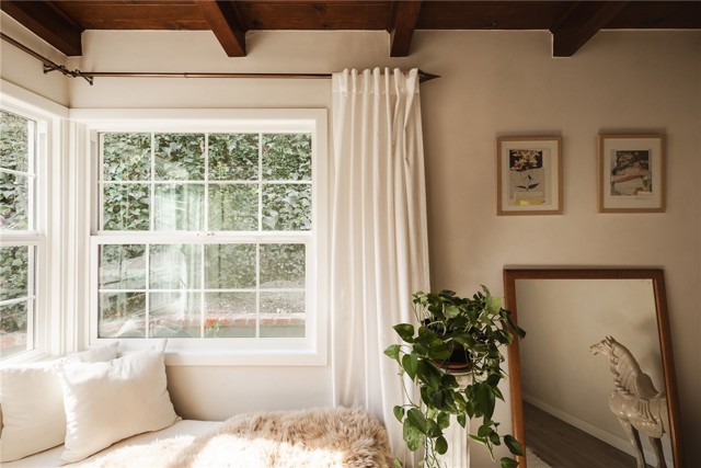 Surrounded by live oaks up a canyon road, sits a modern country cabin freshly remodeled by Gibson House. This 3-bed, 2-bath home can be found on a cul-de-sac just minutes away from the hustle and bustle of city life. The breathtaking kitchen remodel features double-height ceilings with honed marble countertops, new cabinetry, appliances, and open-shelf storage inspired by European country living. Dine indoors or out just off the kitchen, covered by pergola surrounded by oaks and a melodic bird sanctuary. Native plants, including lavender, rosemary, agave, and sage hug a newly installed vintage fountain. The private attached 2-car garage is just off the tiled foyer for maximum security and functionality. The entryway is perfectly positioned to tuck away your goods and then melt into the most dreamy cabin-like living room you've never seen adorned in wood paneling, vaulted beamed ceilings, curved plaster, and marble fireplace, a glistening chandelier, and walls of mirror. Head up a small flight of stairs with a balcony overlooking the living room, and you'll find two character-rich bedrooms with exposed wood beams, large closets, and oversized corner windows. The bathroom on this level features twin sinks and a clawfoot tub for re-energizing the soul. On the 3rd floor, your primary retreat beckons for long mornings on the private deck, embracing the sun and slowing down the pace. The 500-square-foot suite includes a lounge, calacatta viola-clad ensuite bath and walk-in closet. Access a private backyard with a custom-built lounge surrounded by lavender, Meyer lemon and olive trees. At the back of the property, climb a staircase 75 feet above the home to the expansive observation deck overlooking all of the canyon. Come be a part of the Woodbury community and experience true pride of ownership. Views of your hillside out of nearly every window offer a sense of privacy and serenity. The proximity to all NELA has to offer, as well as Kenneth Village, grocery stores, and the coveted Glenoaks Elementary school, await you here on Sinclair.Interested in this Listing?
