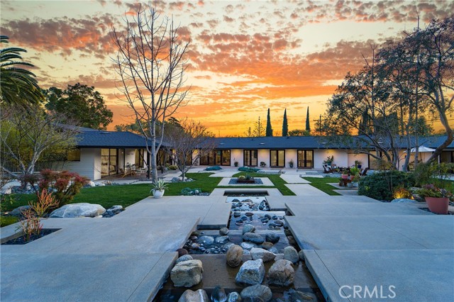 This one-of-a-kind luxury estate is so spectacular that it has become legendarily known as "Kencrest", named by the original Designer & Builder, Edward Randolph Siple. Gated & privately situated at the foot of the Verdugo Mountain trails on a nearly- 1 acre corner lot (41,536 sq ft) with a clear downtown city view, this sprawling 4700+ sq ft Single Story "Mid-century Modern" ranch style masterpiece is a rare gem in this exclusive enclave of Glendale Hills, just a 1/2 mile stroll from Kenneth Village. The epitome of "Indoor-Outdoor'' living, the residence features "Walls of Glass" inviting the outdoors in, creating a harmonious flow throughout the home. The versatile floorplan featuring "dual wings," presents limitless possibilities, catering to various needs such as separate in-law quarters, a teen wing, an art studio, or even serving as a convenient space for the homeowner who runs their businesses from home. For those who love the outdoors relaxing or entertaining, the pet and kid-friendly grounds provide a tranquil & private oasis, featuring a salt water pool, spa, soothing water features, outdoor bbq kitchen and multiple lounging spots amidst lush greenery & drought-tolerant landscaping re-design. With two separate gated property entrances and ample parking, hosting guests becomes effortless. Recently renovated to preserve its mid-century charm, the home showcases finely appointed upgrades & amenities, including a meticulously re-designed chef inspired kitchen complete with Thermador Professional 6 burner stove & Quartzite counters. The master suite was transformed with a marble wet room & counters (a list of upgrades can be seen on the virtual tour link). All 4 bedrooms boast exquisite en-suite full bathrooms, while the 5th bedroom has been thoughtfully converted into an open space, offering flexibility for various needs (could be converted back to a 5th bedroom). Gated front entry opens to reveal a private driveway leading to a 2-car garage with an attached oversized bonus room, currently serving as a home gym and storage area. Conveniently located close to shopping, dining, parks, and freeways, this meticulously curated residence embodies the epitome of refined living. "Kencrest" isn't just a home; it's a timeless masterpiece awaiting its next discerning owner.Interested in this Listing?