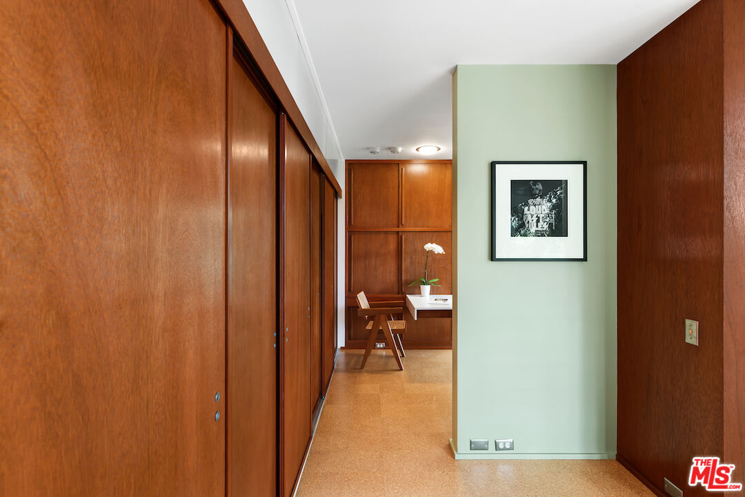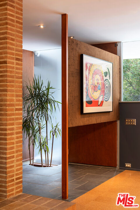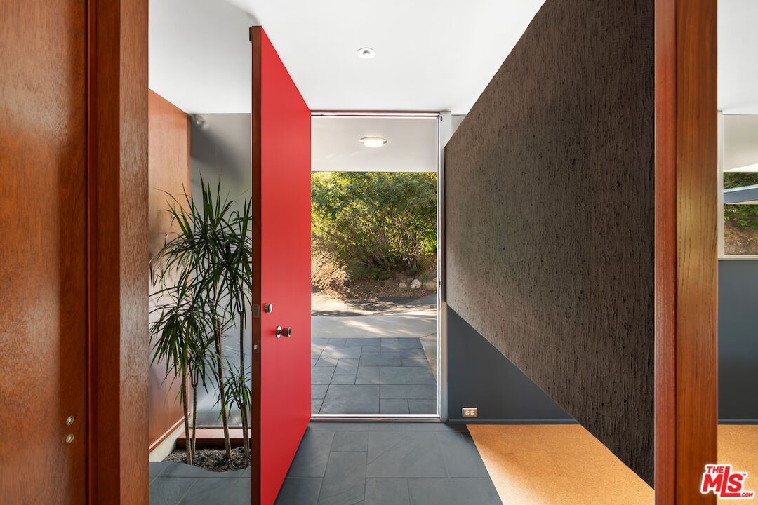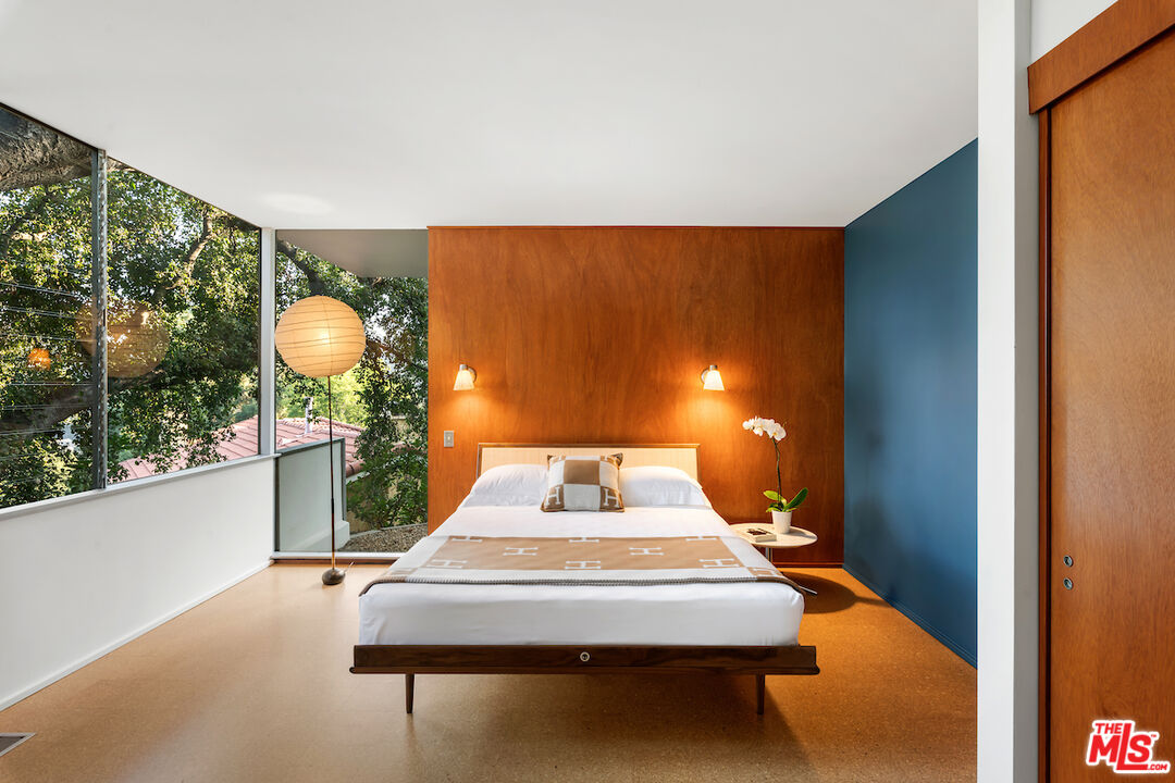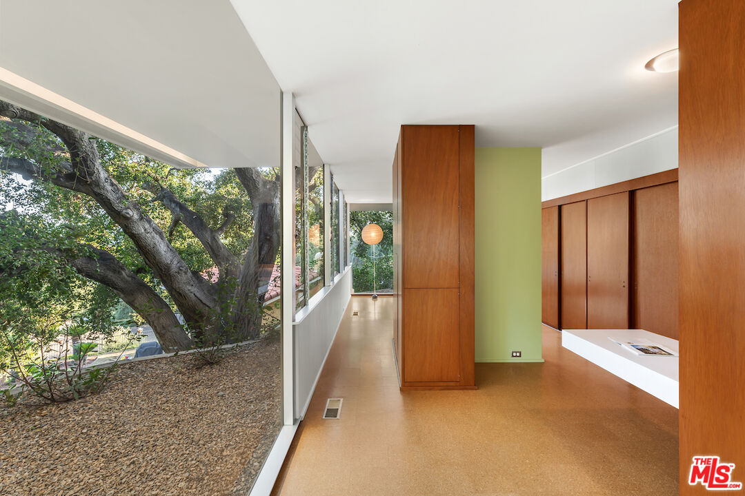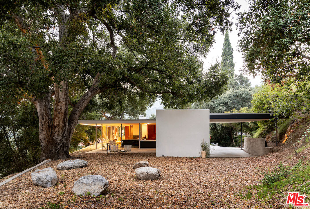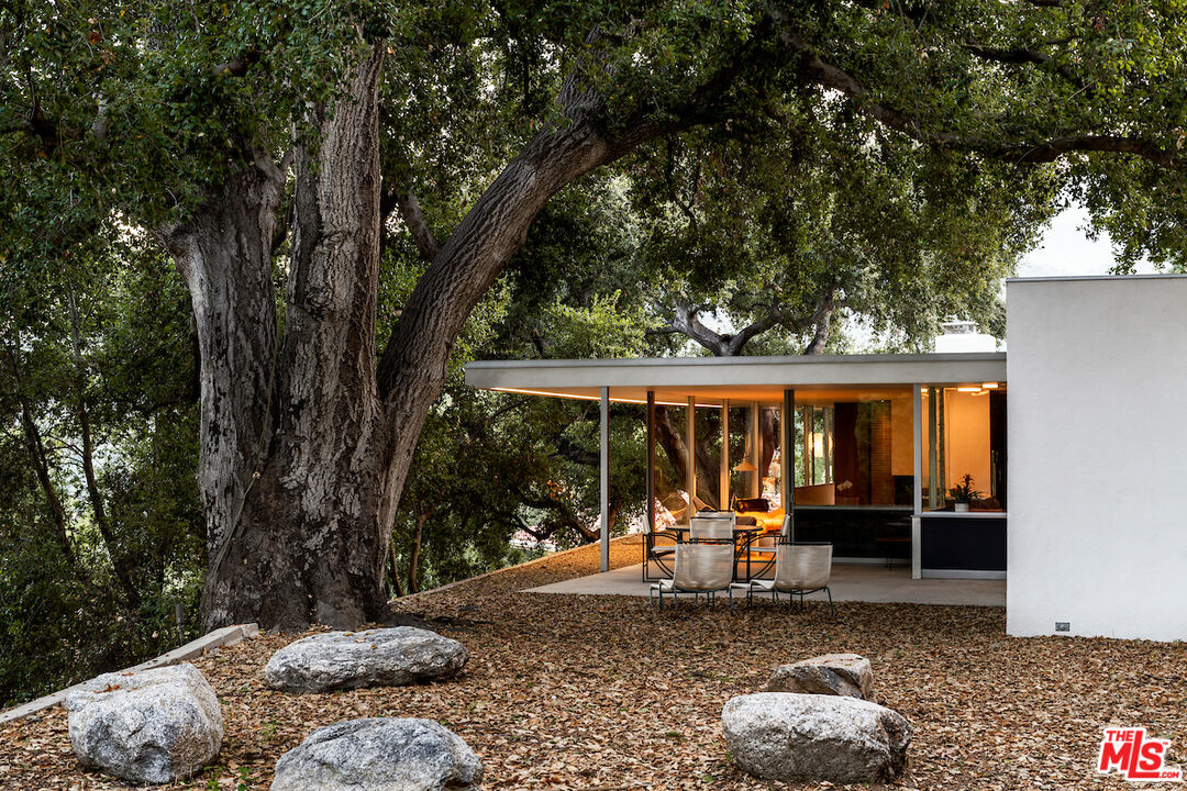 Secreted away, atop a steep knoll adjacent to the Verdugo Mountains Open Space Preserve, just north of Glendale, sits the masterfully restored pied-a-terre that Richard Neutra built, in 1961, for Maurice and Marceil Taylor. In the architectural enclave of Whiting Woods, the aptly named Taylor House, has undergone a meticulous three-year restoration and preservation that would delight any Mid-Century purist. The two bedroom, two bath home, epitomizes Neutra's tenet of therapeutic architecture, with its massive plate glass sliders that allow a free-flowing dialectic between inside and out. The inconspicuous facade, provides an additional layer of privacy, for the literal jewel-box, sited in a sylvan setting among heritage oaks. Neutra's intentional design delays the reveal of that arboreal view upon entering the house the sight-lines are forced to one end of the brick fireplace and a burlap covered art wall, before entering the open concept main room with cork floors and north facing wall of glass extending the full length of the house. The kitchen, separated by a mahogany bookcase, features refurbished Frigidaire appliances and refinished mahogany cabinets. Paint colors are matched to Neutra's original palette, light switches, fixtures and switch plates are original, even the recessed chrome swivel toothbrush/cup holders in each bathroom are vintage. Precise period details abound, such as the tiles in the open-air Japanese soaking tub and shower off of the primary bedroom. The home also includes a full-size laundry area, HVAC, car port for two, alarm system and numerous outdoor spaces. This architectural sanctuary is moments from fine dining and shopping, JPL, Cal Tech, Art Center, with easy access to downtown, Pasadena and the valley.Interested in this Listing?