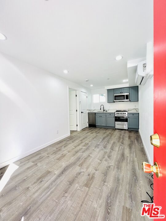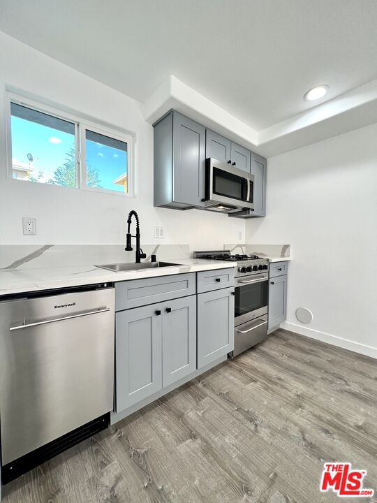 Newly built junior one bedroom ADU now available in the best part of Glendale! This quiet rear unit is bright with designer finishes including new paint, recessed lighting and distressed hardwood style floors. Small but efficient open concept plan has new kitchen cabinets, sparkling quartz countertops and new appliances including stainless steel refrigerator, microwave, dishwasher, stove and full Size Washer and Dryer. Very strong new mini split AC/Heat system with remote. Bright and cheerful with new windows and blinds. Spacious bedroom and bath has entry from either bedroom and main room. Best feature is enormous gated private patio, great for those who like to make an outdoor paradise. Building is just around the corner from Trader Joes, the Americana Mall, Portos and all Glendale has to offer and has a walk score of 98! Street parking only. Friendly pets ok! Tenants must have their own good credit, sorry no co-signers accepted.