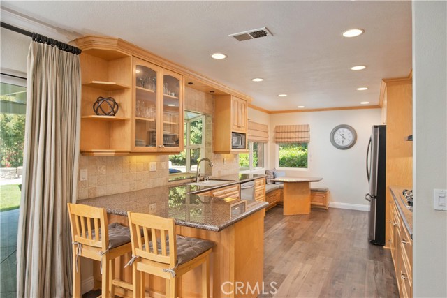 Nestled in the heart of the prestigious Granada Highlands, this beautifully updated five-bedroom residence offers the perfect blend of elegance, comfort, and privacy. A rare opportunity, this unique home sits on an expansive 18,834 sq ft tiered flat lot an exceptional canvas to bring your outdoor dreams to life. Whether you've envisioned a private tennis, pickleball, or basketball court, or a luxurious resort-style pool, this property offers the space and potential to make it a reality. The grounds promise an ultra-private, park-like setting an entertainer s paradise that is truly one of a kind. From the moment you step through the custom double doors, you're welcomed by soaring vaulted and beamed ceilings that create a bright, open atmosphere. The formal living room exudes sophistication with its charming bay window, cozy fireplace, and detailed crown molding. It seamlessly flows into the formal dining room, which features a custom built-in buffet with ample storage ideal for hosting dinner parties and special occasions. The updated eat-in kitchen is both stylish and functional, complete with granite countertops, custom cabinetry, modern appliances, and a bay window offering tranquil views of the lush backyard. Adjacent to the kitchen, the spacious family room features its own fireplace and built-in bar a perfect space for entertaining or relaxing. Upstairs, discover five generously sized bedrooms, including a luxurious primary suite with vaulted ceilings, a custom walk-in closet, and a glass slider leading to an oversized balcony with serene treetop views the perfect place to unwind. The spa-inspired primary bathroom has been tastefully remodeled and features dual vanities, a soaking tub, and a separate walk-in shower. The additional bedrooms offer flexible space for family, guests, or a home office. Step outside into your own private oasis a split-level backyard with mature trees, manicured landscaping, and fire pit and endless potential for outdoor living. Enjoy gatherings under the oversized covered patio, complete with a custom built-in BBQ island with bar seating, ideal for year-round entertaining. Additional features include a direct-access two-car garage and possible RV access. Ideally located near Knollwood Country Club, O Melveny Park, and award-winning schools, this rare gem offers a unique opportunity to own a slice of paradise in one of the Valley s most sought-after neighborhoods.Interested in this Listing?