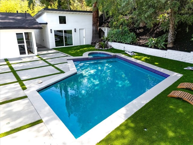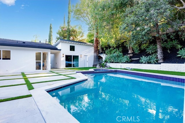 Welcome to this stunning single-story pool home, located in a prime Granada Hills neighborhood. Boasting modern elegance and thoughtful design, this property is a true gem. With the addition of a pool house in the backyard this home is an entertainer s dream! From the moment you arrive, the lushly landscaped front yard and vibrant plants create a warm welcome. Step inside through double doors to discover a bright and open floor plan. The formal living area features a fireplace and expansive windows that fill the space with natural light, perfect for both relaxing and entertaining guests. The cozy dining room off the kitchen is perfect for hosting family and friends. The chef s kitchen is equipped with stainless steel appliances, quartz counter tops and ample cabinets. The primary bedroom offers an updated ensuite bathroom, while two additional bedrooms share another beautifully renovated bathroom. This home has been meticulously updated with new flooring, windows, plumbing, electrical, interior and exterior doors, a garage door, sprinklers, fresh sod and newly planted trees for enhanced privacy. Additional features include a covered patio, that make outdoor living truly exceptional. The two-car garage offers ample storage and off-street parking - conveniently close to Great Schools, Shops, Restaurants & Easy Access to FreewayInterested in this Listing?