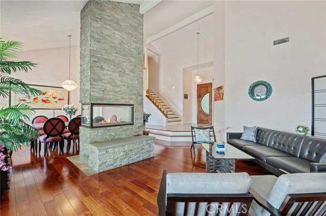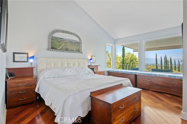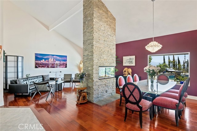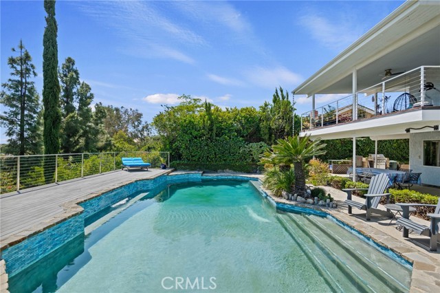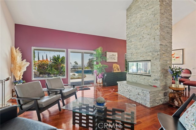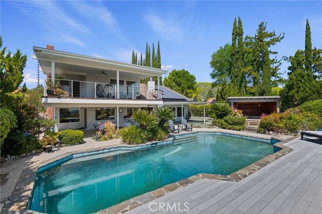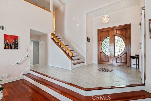 Stunning Views! Welcome to this magnificent retreat nestled in one of Granada Hills most desirable and quiet neighborhoods. A rare blend of peaceful surroundings and convenient city living, this beautifully customized residence offers breathtaking views and refined upgrades throughout. Mornings are gifted with beautiful sunrises over the backyard. Step through impressive double solid mahogany front doors with leaded glass accents into a grand foyer, where a crystal chandelier and decorative tile flooring set the tone for the elegant interiors. The heart of the home, a remodeled open-concept kitchen, is outfitted with premium KitchenAid stainless steel convectionoven, Wolfe cooktop, counter depth refrigerator andsleek pendant lighting over the breakfast counter, and a spacious layout perfect for entertaining.Framed custom picture windows designed to capture the beauty of the landscapehave been added in the kitchen dining area and separate formaldining room.Adjacent, tothe true formal dining room is anelegantliving area boasting vaulted ceilings, Santos mahogany floors, and a dramatic dual-sided stacked stone fireplace. The expansive family roomwithporcelain tile floors, a mirrored bar, and access to the backyard oasis make it an entertainer's dream.Upstairs, Brazilian solid cherry hardwood floors lead to a luxurious master suite featuring a large sitting area, walk-in closet and separatetriplemirrored wardrobe doors, as well asa spa-like private bath with a walk-inglass block shower, jettedsoaking tub, and double sinks. Step out onto the private redwood deck and enjoy morning coffee with panoramic views of the San Fernando Valley.This energy-efficient home also includes Milgard dual-pane windows and sliders, a LifeSource whole-housewaterfilter, Culligan water softener, relocated attic HVAC system, and a durable Monier gray concrete tile roof. The finished 3-car garage features insulated doors.Helping maintain comfort is a Quiet Cool house attic fan.Step into the backyard paradise a $35,000 pool remodel includes new plaster, tile, lighting, deck, and railing. Enjoy the saltwater pool with Hayward spa heater, separate covered spa, koi pond with bridge, gas line for aBBQ center, and sun deck perfect for private relaxation or unforgettable gatherings.Don t miss your chance to own this unique, move-in-ready home that seamlessly blends modern comforts, timeless design, and unmatched views.
