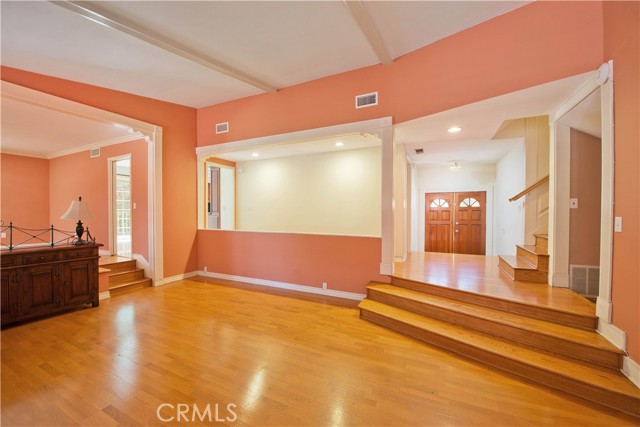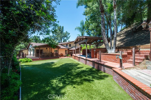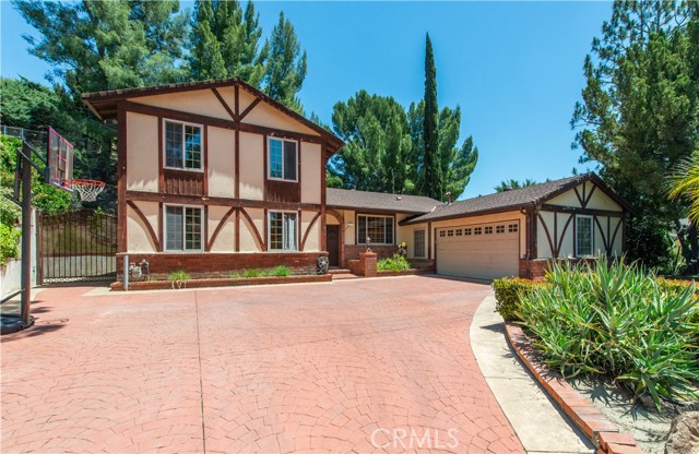 Welcome to this exceptionally private five-bedroom home in Granada Hills, ideally situated directly across from the lush fairways of Knollwood Golf Course. Elevated above the street with a long, oversized driveway and no neighbors in front or behind, this residence offers a rare combination of seclusion and scenic beauty. Step through the double doors into a thoughtfully designed 2874 sq/ft floor plan featuring two bedrooms and one full bath on the main level perfect for guests or a home office alongside a spacious family room with a cozy fireplace, a formal living room, an elegant dining room, and a large eat-in kitchen complete with granite countertops and updated appliances. The home is filled with natural light, thanks to abundant windows and glass sliders that open to a truly inviting backyard. Upstairs, you'll find three additional generously sized bedrooms and two full bathrooms, including a spacious primary suite with a walk-in closet and an updated ensuite bath featuring dual sinks. The expansive 17,588 sq/ft lot backyard is a true entertainer s dream, offering multiple covered patios, low-maintenance artificial turf, and a tranquil atmosphere enhanced by mature trees. The setting is so peaceful, you ll forget you re in the heart of the San Fernando Valley this home feels more like a mountain hideaway.Interested in this Listing?