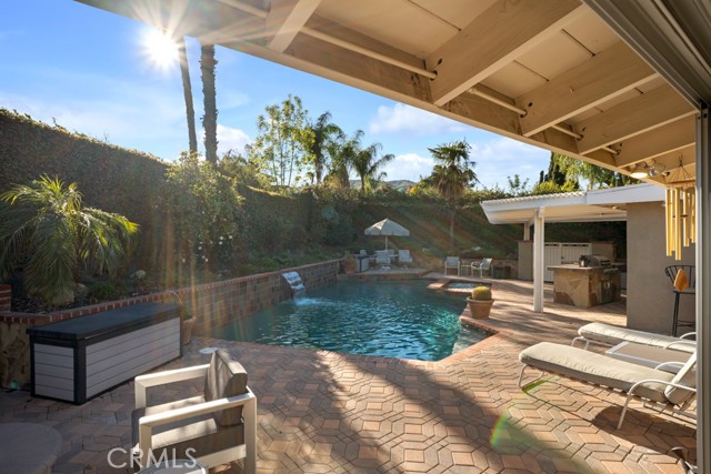 Gorgeous Sprawling Single Story Granada Hills Pool Home set against the Backdrop of Bee Canyon & O'Melveny Park. This Stunning home Exudes charm with its Stacked Stone Exterior Accents that Beautifully Compliment the Meticulously Landscaped surroundings. The Hardscape that Surrounds the Home adds to its Appeal creating Atmosphere. The Spacious home Features five Bedrooms and 4 Bathrooms offering Plenty of room for Comfortable Living. Inside you will find Spacious Rooms adorned with Custom Window Treatments and Light Fixtures creating a warm and Inviting Ambience throughout. The Kitchen is a Chef's Dream, featuring a Custom Nook with Desk, Large Island, Quartz Countertops, Stainless Steel Appliances which include Double-Oven, Built in Convection Oven and Dishwasher, Self-Closing Cabinet Doors, and Pots and Pan Drawers. The Family Room Boasts a Built-in Entertainment Center Stacked Stone Fireplace, Large Custom Window Bringing the Outdoors in, and a Security Door which Leads to the Backyard Retreat. The Living Room, Dining Room and Sunken Bar provide ample Space for Gathering and Socializing. The Primary Suite is a true Oasis complete with a Custom Bathroom and a Spacious Walk-in Closet. The Luxurious Primary Bathroom features Granite Counters, Tile Flooring and Tub Surround, a Tile Shower with two Shower heads, Rain Shower Head and Bench, Vanity with Dual Sinks and Mirrors, and Exquisite Finishes Throughout. The Primary Bedrooms custom double Sliding Doors Open to the Backyard Retreat, allowing for Seamless indoor-outdoor Activities. This Homes Backyard Retreat is a true Sanctuary, offering a blend of natural Beauty and Modern amenities that Create an Unforgettable Outdoor experience. Featuring a Large Saltwater Pool and Spa with Waterfall, Built-in BBQ, Upper Dining Deck and Fire-pit, just Imagine yourself Soaking up the Sun or Relaxing by the Firepit with Family and Friends while taking in the Soothing Sounds of the Waterfall, the Lush Greenery and the Serene Views of the Rolling O'Melveny Hills. All of this, and it's located Walking distance to Van Gogh Charter School, Bee Canyon Park and O'Melveny Park. Additional Upgrades include Dual Pane Windows Throughout, Newer Roof and HVAC system & Jandy Remote Controlled Pool System and Custom Gates to conceal Pool equipment.Interested in this Listing?