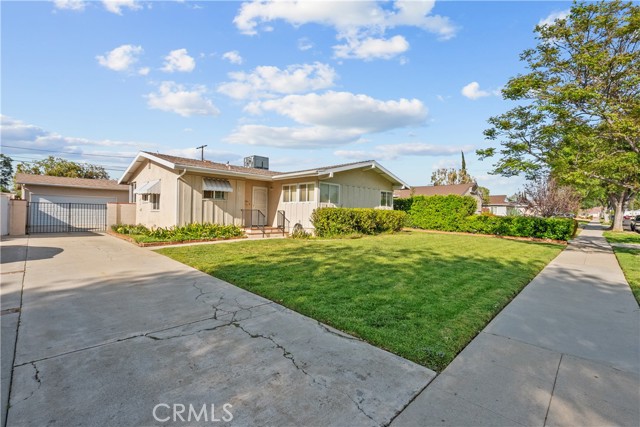 Nestled in the highly desirable Granada Hills enclave, this delightful mid-century home offers the perfect blend of vintage charm and modern comfort. Located on a quiet, tree-lined street, the home is surrounded by a welcoming community of well-maintained residences, making it an ideal place for family living. As you approach the home, a charming front porch invites you to step inside and explore its timeless appeal. Original hardwood floors, floor-to-ceiling windows, and classic architectural details create a warm and inviting atmosphere throughout. This spacious home features three bedrooms and two bathrooms, offering ample room for both relaxation and entertaining. The vintage cook s kitchen is a true gem, with ample cabinet storage, tile countertops, a gas oven and range, dishwasher, and refrigerator. Conveniently located adjacent to the kitchen, the laundry room offers extra storage and provides access to the backyard. The inviting living room is perfect for unwinding, featuring hardwood floors, recessed lighting, and large windows that overlook the serene backyard. The separate dining area, illuminated by a contemporary light fixture, provides a sophisticated setting for meals with loved ones. A French glass door leads to the private backyard, enhancing the home's seamless indoor-outdoor flow-ideal for California-style entertaining. The generous primary bedroom offers hardwood floors, a ceiling fan, and an en-suite bathroom with a tiled stall shower and a vanity area. Two additional light-filled bedrooms feature ceiling fans, nice closet space, and hardwood floors. These bedrooms share a full hallway bathroom with a tiled shower-over-tub and a large vanity. Step outside to your private backyard oasis, where a mature orange tree, covered patio, and spacious grassy area await, providing a perfect setting for outdoor dining, relaxation, and gatherings. The detached two-car garage offers plenty of storage and convenience, complete with an automatic door opener. With thoughtful updates such as a central air and heat, a tankless water heater, most copper plumbing and a 100-amp electrical panel, this home combines modern amenities with its timeless mid-century character. The potential for a free-standing Accessory Dwelling Unit (ADU) in the spacious backyard adds further opportunity for customization. Conveniently located near schools, freeways, shopping, and restaurants, this home is ready for you to move in and start creating lasting memories.Interested in this Listing?