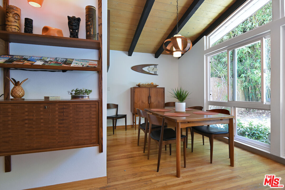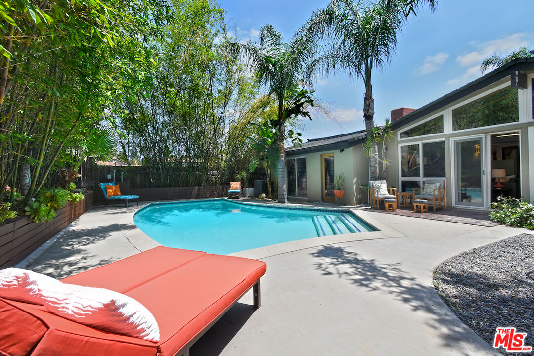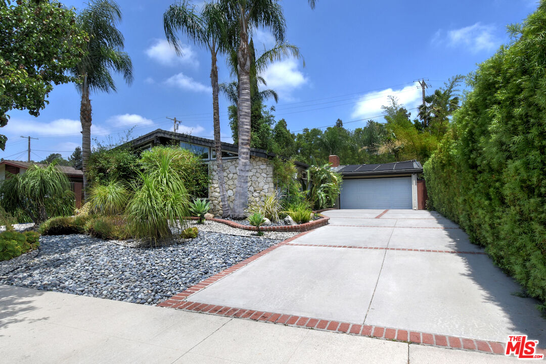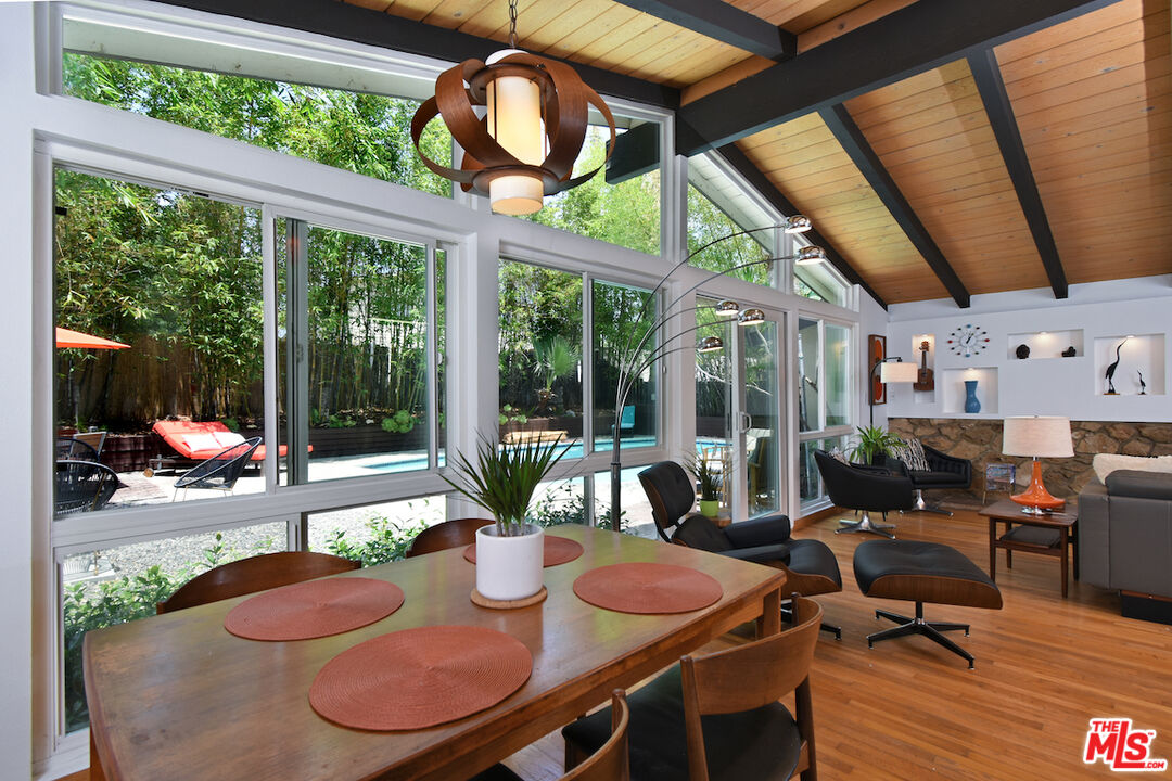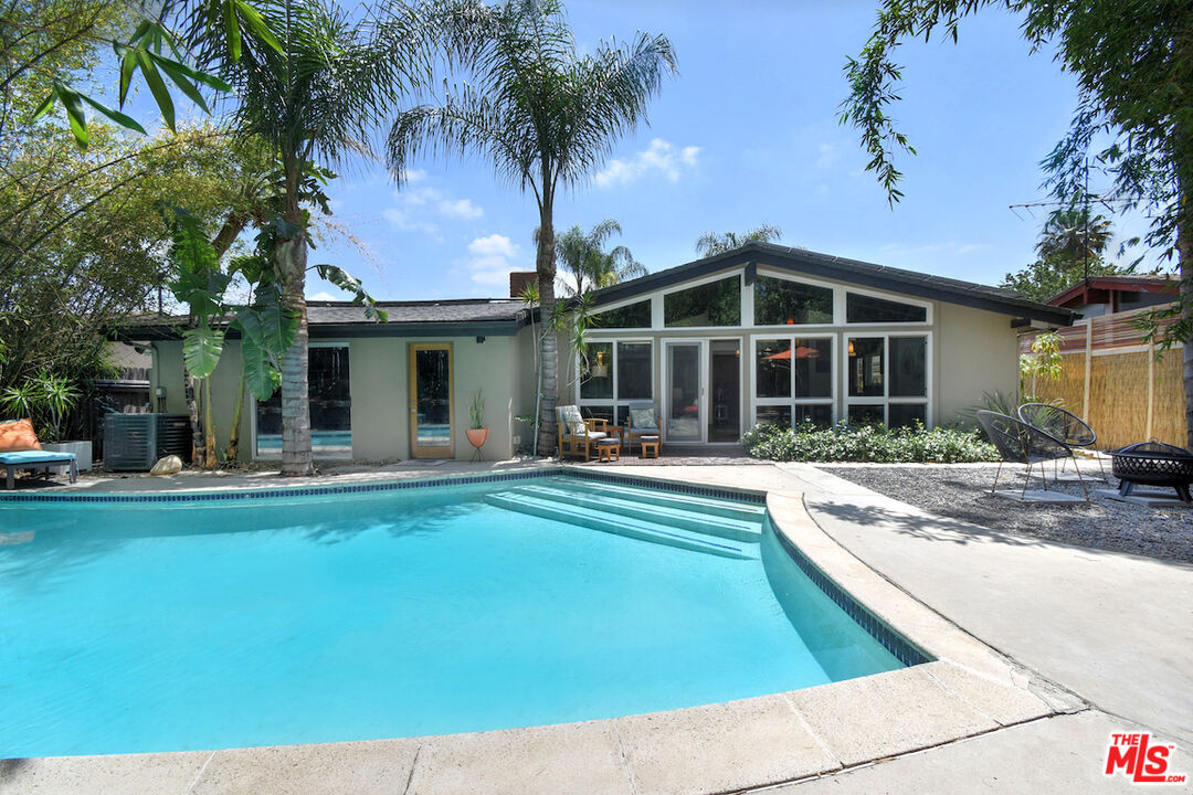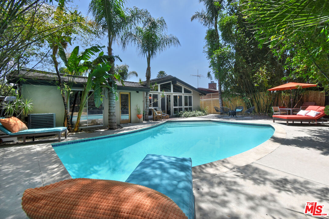 Krisel & Palmer, AIA Mid Century Modern. Situated within the coveted Marlborough Palms tract, an enclave of 149 mid-century modern homes developed in the late 1950s, blurring the lines between indoor and outdoor living. As soon as you step foot inside, you'll immediately notice strong MCM architecture with walls of glass framing the oasis like backyard, living room anchored by a vintage rock fireplace with custom insets, open beamed ceilings, original oak hardwood flooring and the most beautiful period built in, bringing authenticity and style to the main living space. Dining area with curated chandelier in full view of the garden. True to its mid-century roots with original wood paneling, and complemented by modern upgrades like quartz countertops and a designer backsplash, the kitchen is a perfect blend of form and function. Immediately off the entry, there's a hidden fourth bedroom with seagrass wallpaper, perfect for a home office. Down the hall are three well-sized bedrooms, each with modern touches, a hall bath and private primary retreat offering ample closet space and a spacious en-suite bath. Step outside to the private backyard, complete with multiple sitting areas, walls of bamboo, and a sparkling pool, an oasis that perfectly reflects Krisel's vision of integrated indoor-outdoor design. This home isn't just a place to live, it's a piece of architectural history, a beautifully preserved example of post-war suburban innovation in Southern California. Don't miss your chance to experience 16439 Kingsbury Street.Interested in this Listing?