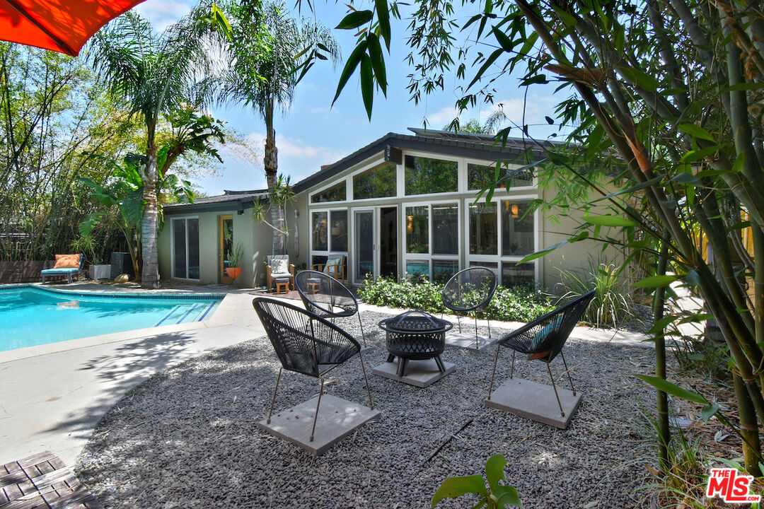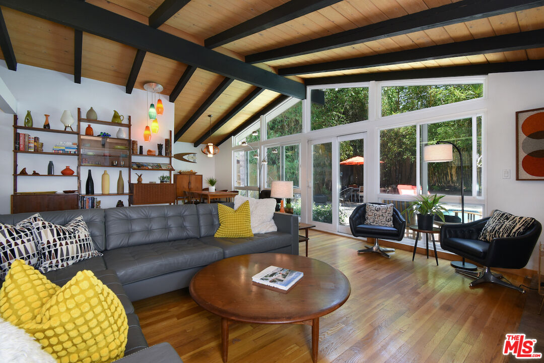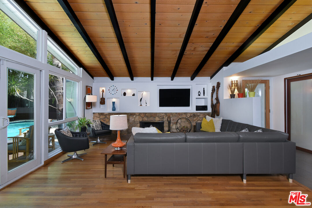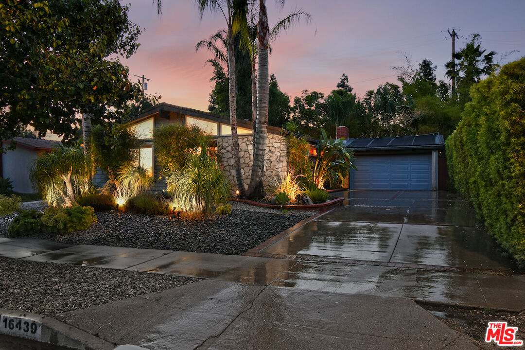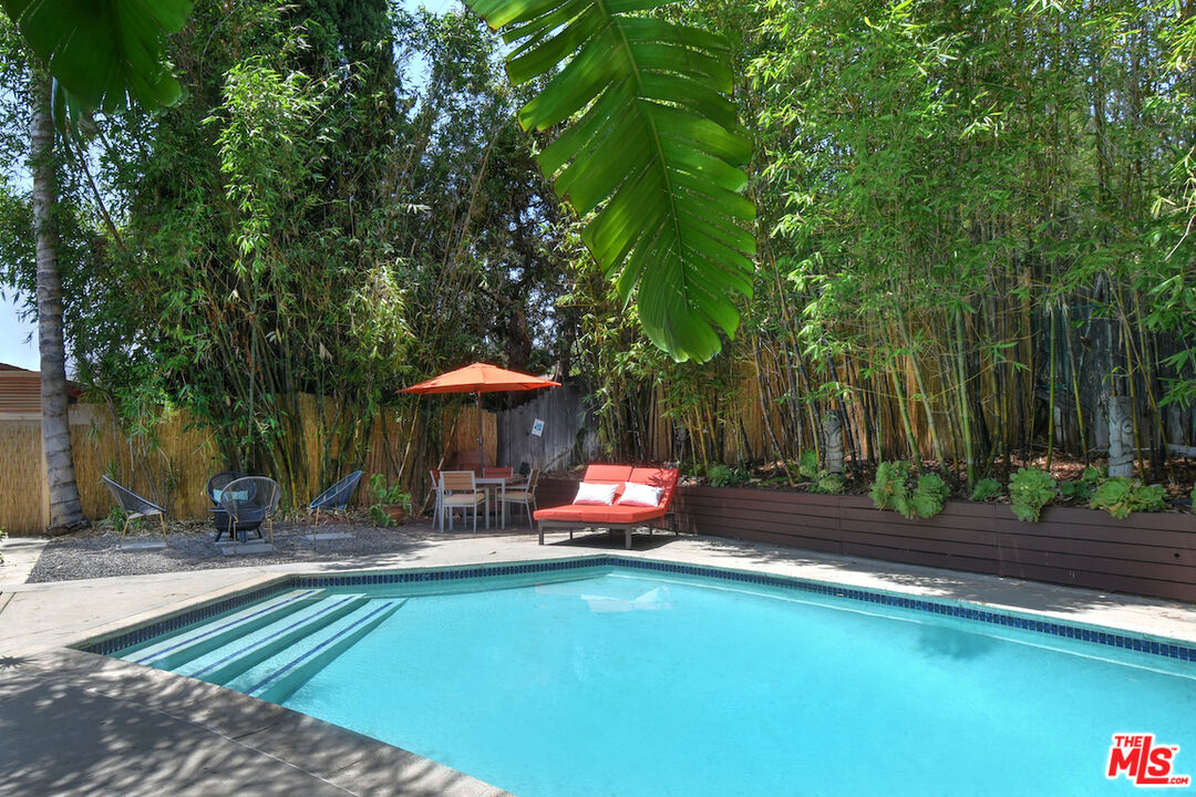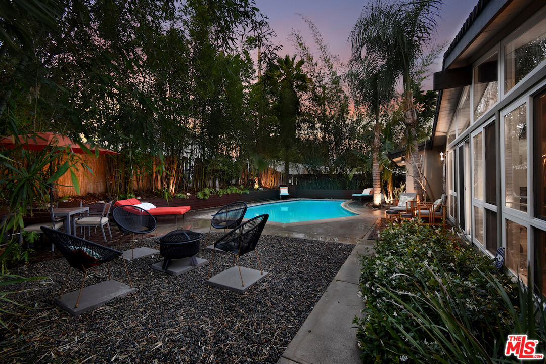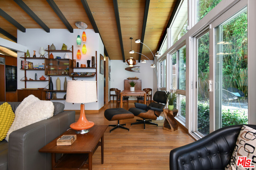 Krisel & Palmer, AIA Mid Century Modern. Situated within the coveted Marlborough Palms tract, an enclave of 149 mid-century modern homes developed in the late 1950s, blurring the lines between indoor and outdoor living. As soon as you step foot inside, you'll immediately notice strong MCM architecture with walls of glass framing the oasis like backyard, living room anchored by a vintage rock fireplace with custom insets, open beamed ceilings, original oak hardwood flooring and the most beautiful period built in, bringing authenticity and style to the main living space. Dining area with curated chandelier in full view of the garden. True to its mid-century roots with original wood paneling, and complemented by modern upgrades like quartz countertops and a designer backsplash, the kitchen is a perfect blend of form and function. Immediately off the entry, there's a hidden fourth bedroom with seagrass wallpaper, perfect for a home office. Down the hall are three well-sized bedrooms, each with modern touches, a hall bath and private primary retreat offering ample closet space and a spacious en-suite bath. Step outside to the private backyard, complete with multiple sitting areas, walls of bamboo, and a sparkling pool, an oasis that perfectly reflects Krisel's vision of integrated indoor-outdoor design. This home isn't just a place to live, it's a piece of architectural history, a beautifully preserved example of post-war suburban innovation in Southern California. Don't miss your chance to experience 16439 Kingsbury Street.Interested in this Listing?