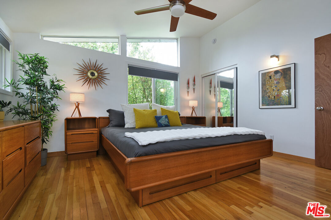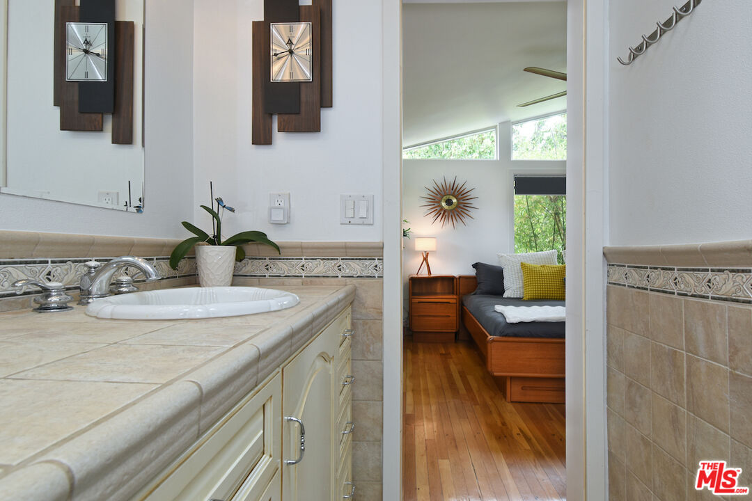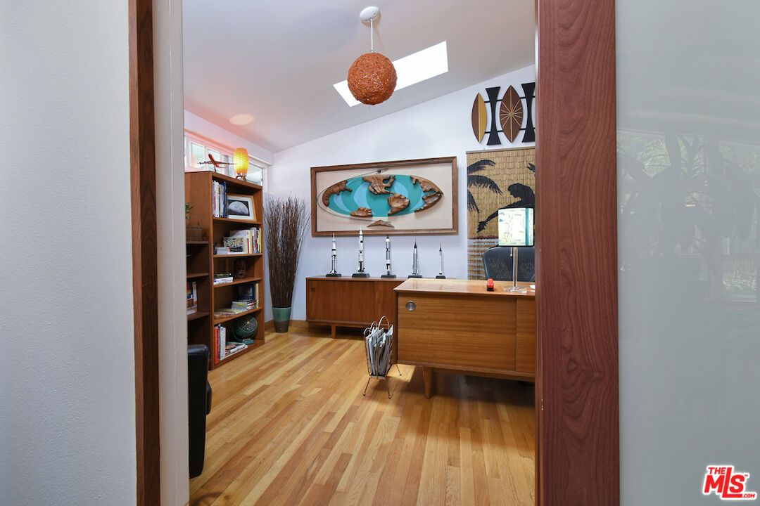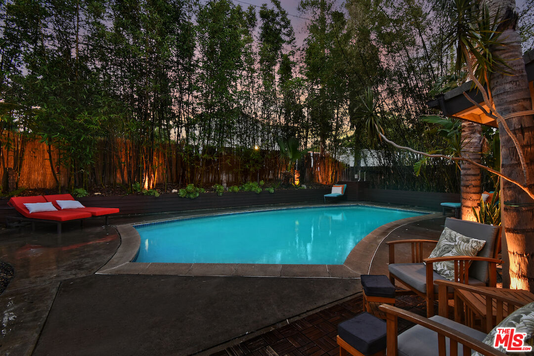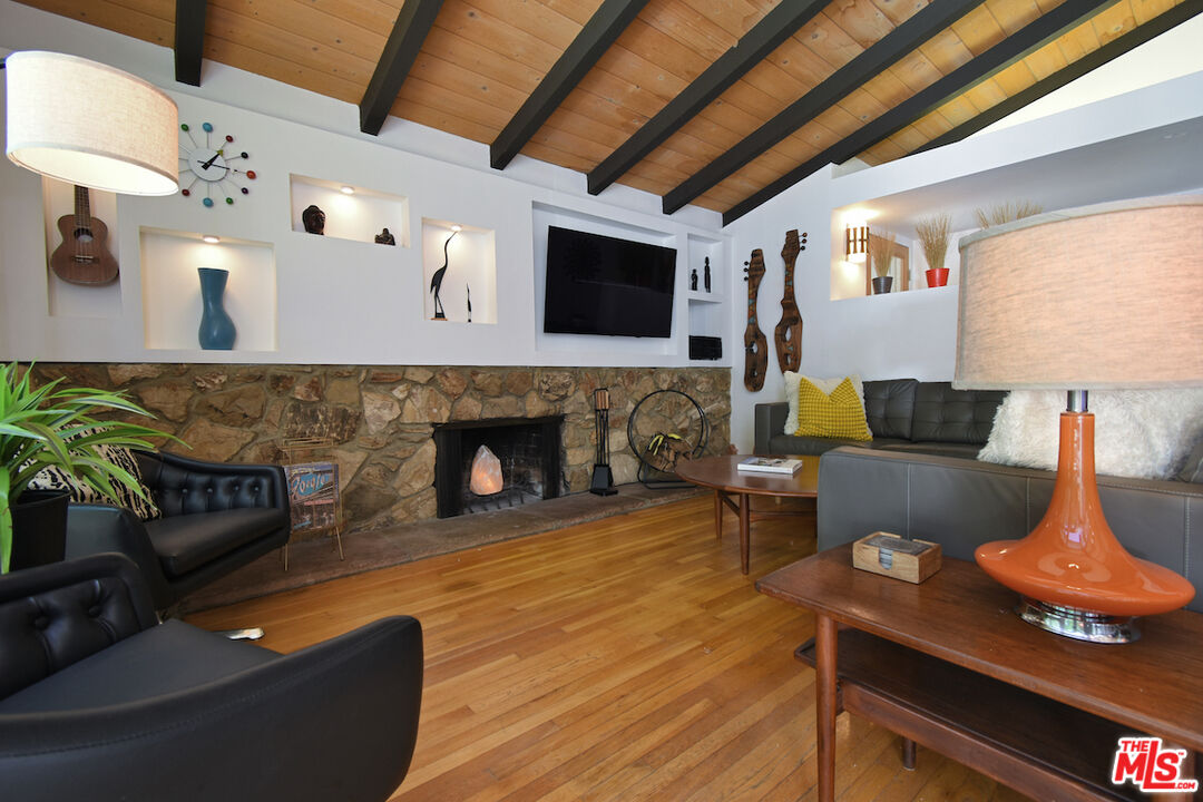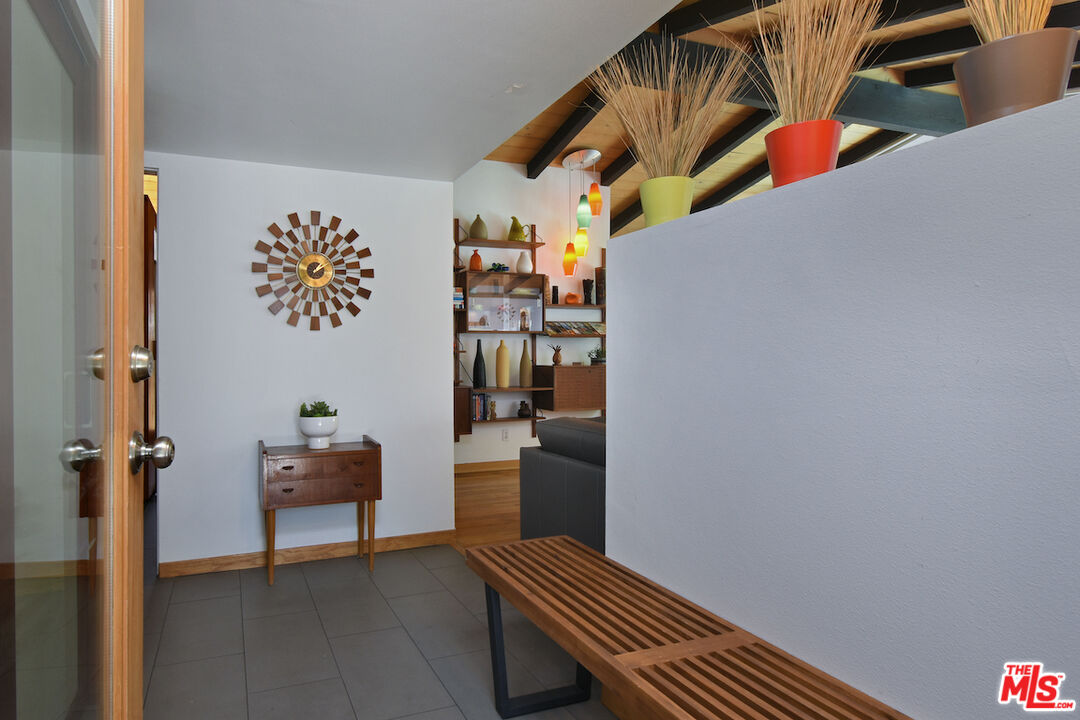 Krisel & Palmer, AIA Mid Century Modern. Situated within the coveted Marlborough Palms tract, an enclave of 149 mid-century modern homes developed in the late 1950s, blurring the lines between indoor and outdoor living. As soon as you step foot inside, you'll immediately notice strong MCM architecture with walls of glass framing the oasis like backyard, living room anchored by a vintage rock fireplace with custom insets, open beamed ceilings, original oak hardwood flooring and the most beautiful period built in, bringing authenticity and style to the main living space. Dining area with curated chandelier in full view of the garden. True to its mid-century roots with original wood paneling, and complemented by modern upgrades like quartz countertops and a designer backsplash, the kitchen is a perfect blend of form and function. Immediately off the entry, there's a hidden fourth bedroom with seagrass wallpaper, perfect for a home office. Down the hall are three well-sized bedrooms, each with modern touches, a hall bath and private primary retreat offering ample closet space and a spacious en-suite bath. Step outside to the private backyard, complete with multiple sitting areas, walls of bamboo, and a sparkling pool, an oasis that perfectly reflects Krisel's vision of integrated indoor-outdoor design. This home isn't just a place to live, it's a piece of architectural history, a beautifully preserved example of post-war suburban innovation in Southern California. Don't miss your chance to experience 16439 Kingsbury Street.Interested in this Listing?