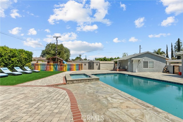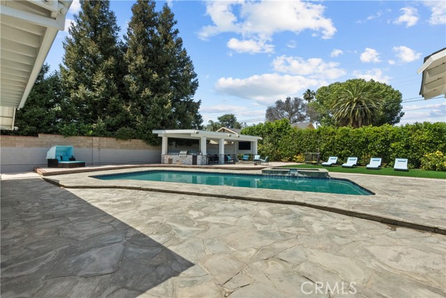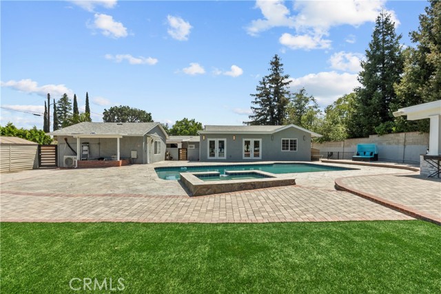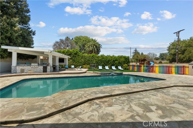 Welcome to this beautifully updated 4-bedroom, 3-bathroom home located in one of Granada Hills' most sought-after neighborhoods. Spanning 2,616 sq ft on a massive 17,424 sq ft gated lot, this property offers the perfect blend of modern luxury and spacious living. Step inside to an open-concept layout featuring soaring ceilings and seamless flow throughout. The heart of the home is a brand-new dream kitchen, complete with a large island, a butler's pantry, and a custom coffee station ideal for entertaining and everyday living. Every bathroom has been tastefully updated, including the expansive primary suite with a spa-like bathroom featuring dual sinks and an oversized walk-in shower. The backyard is an entertainer s paradise perfect for adults, children, and furry friends alike! Enjoy a large pool and spa, built-in grill with refrigerator, a covered patio for outdoor dining, a cozy fire pit area, a kids' play zone, and low-maintenance artificial turf. Additional highlights include a detached garage with alley access ideal for parking or a potential ADU conversion.Interested in this Listing?