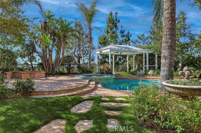 Located in the prestigious Canyon Crest neighborhood, this stunning home sits on an expansive ~17,500 sq. ft. lot. It offers one of the most beautiful backyards you ll ever see complete with a lagoon-style pool and spa, fire pit conversation area, gazebo, covered patio, outdoor kitchen with seating, and lush landscaping featuring mature trees, fruit trees (lemon, fig, pomegranate, apricot, peach), and a vegetable garden. Inside, the grand double-door entry opens to soaring two-story ceilings, while the spacious island kitchen seamlessly flows into the family room, offering serene views of the backyard. The luxurious primary suite features vaulted ceilings, a spa-like en-suite bathroom with a separate tub and shower, and generous walk-in closets. With a convenient downstairs bedroom and bathroom, this home is perfect for families or guests. Just a short walk to the HOA s private dog park and scenic hiking trails leading to Mission Peak in O Melveny Park, this property is ideally located near top-rated schools, making it perfect for both relaxation and entertainment. By night, the yard transforms into a magical retreat with accent lighting, fountains, glowing pool and spa, and built-in surround sound truly an entertainer s dream.Interested in this Listing?