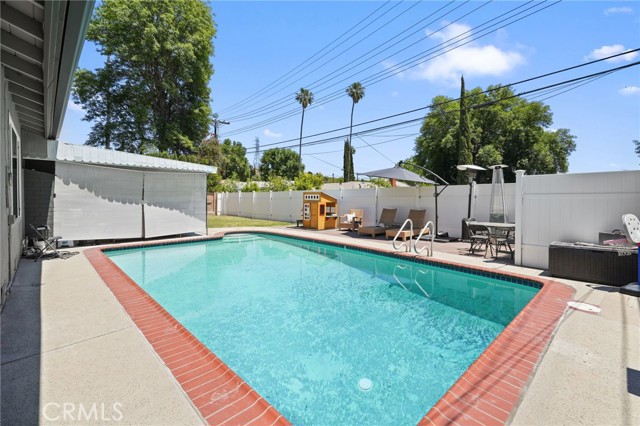Located in a quiet North of Rinaldi neighborhood, this beautifully maintained 3-bedroom, 2-bath home offers 1,436 sqft of comfortable living space on a spacious 7,318 sqft lot. With great curb appeal and lush palm and fruit trees out front, you ll feel right at home from the moment you arrive. Step inside through elegant double iron gates to a bright, open floor plan featuring a modern fireplace, a large chef s kitchen with a central island, and a dining area - perfect for everyday living or entertaining. The primary bedroom includes an upgraded en-suite bath, while two additional bedrooms share a full bathroom. Enjoy year-round comfort with central AC and Heat. The backyard is built for relaxation and fun, complete with a sparkling pool, large patio, grassy area for gardening or play, and additional outdoor storage. Move-in ready and perfect for summer - don t miss this one!Interested in this Listing?